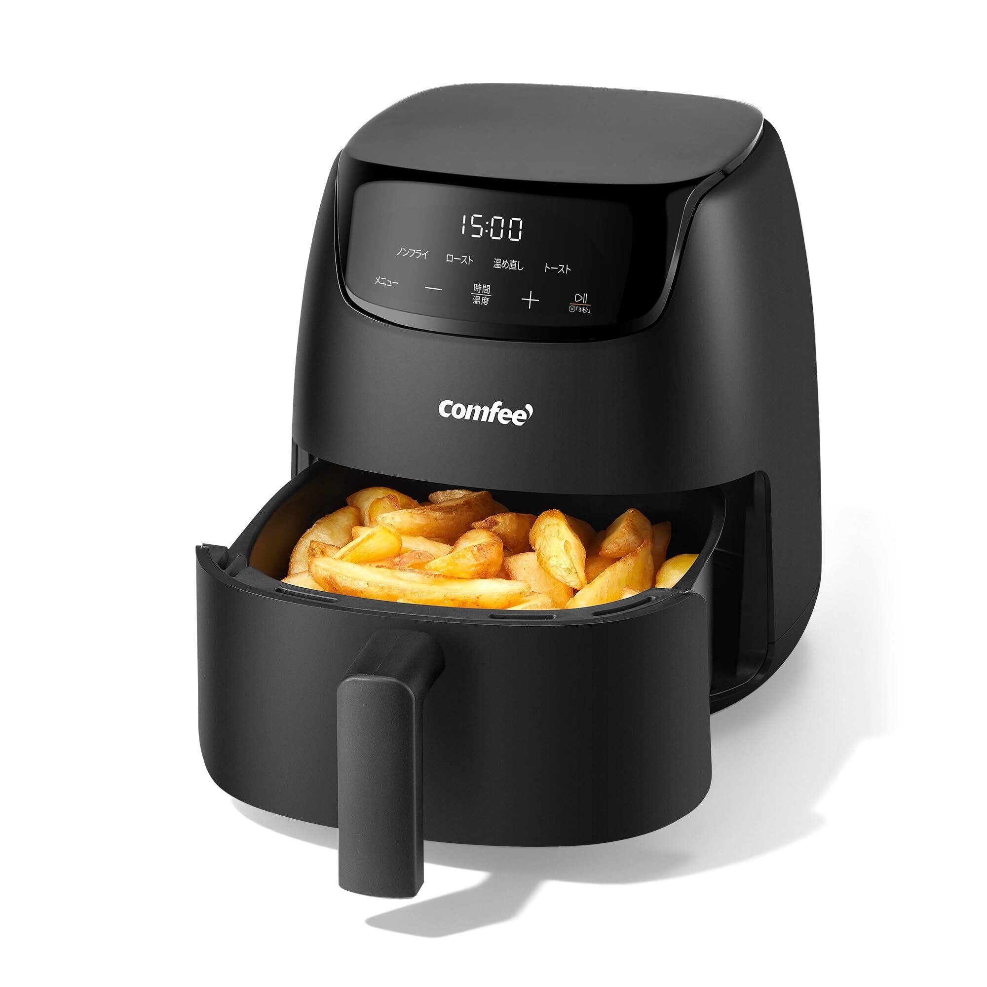 COMFEE' エアフライヤー 2L コンパクト 1150W 高速加熱 四つのメニュー 一人暮らし対応 温度調節可能 360°熱風循環 ノンフライ調理 PSE認証済 日本仕様 100V ブラック CAD-20PK00C1