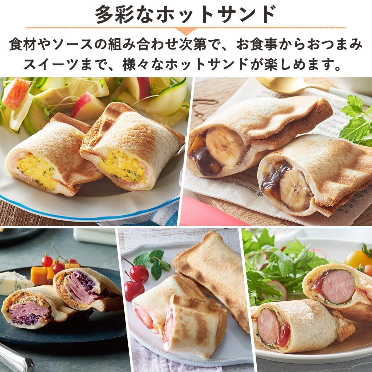【多彩なホットサンドを楽しむ】ハム&チーズなどの定番ホットサンドから、カレーをはさんで“カレーパン”、焼きそばをはさめば“焼きそばパン”、チョコやフルーツをはさんでスイーツにと様々なレパートリーが楽しめます。