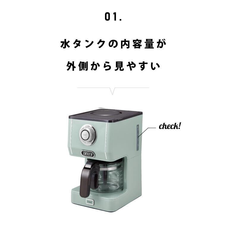 【Toffy/トフィー】 アロマドリップコーヒーメーカー K-CM5 ペールアクア 公式限定先行発売カラー ドリップ式 蒸らし機能 自動保温機能 ガラスポット メッシュフィルター付き レトロ K-CM5-PA