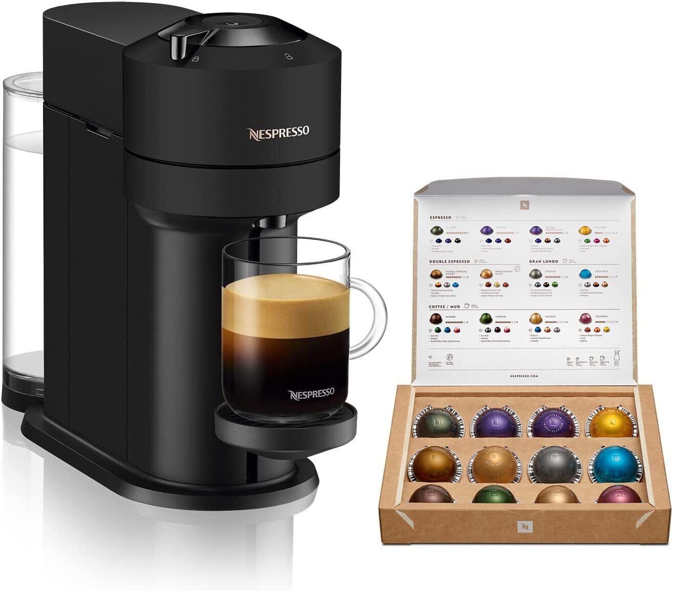 【数量限定】ネスプレッソ カプセル式コーヒーメーカー ヴァーチュオ ネクスト マットブラック 水タンク容量1.1L 遠心力抽出 ワンタッチ GDV1-MB-W