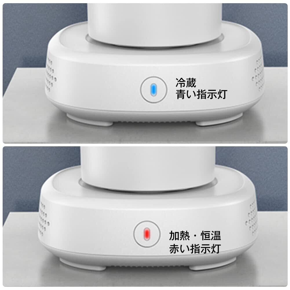 本体サイズ:12.9*12.9*15.75cm 外箱サイズ:26.1*16.7*9cm ネットウェート:1kg グロスウェート:1.7kg 材質:アルミニウム合金+ABS カラー:ホワイト セット内容:コップ*1、スタンド*1、家庭用コード*1、シリコーンコースター*1、日本語取扱説明書*1、ボックス*1