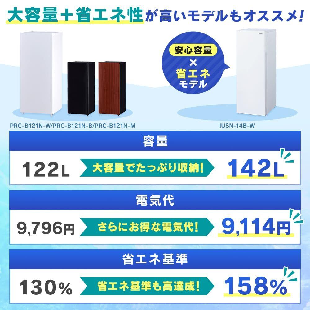 アイリスオーヤマ 冷凍庫 142L ホワイト IUSN-14B-W 前開き式 自動霜取り 幅47.5cm 新生活