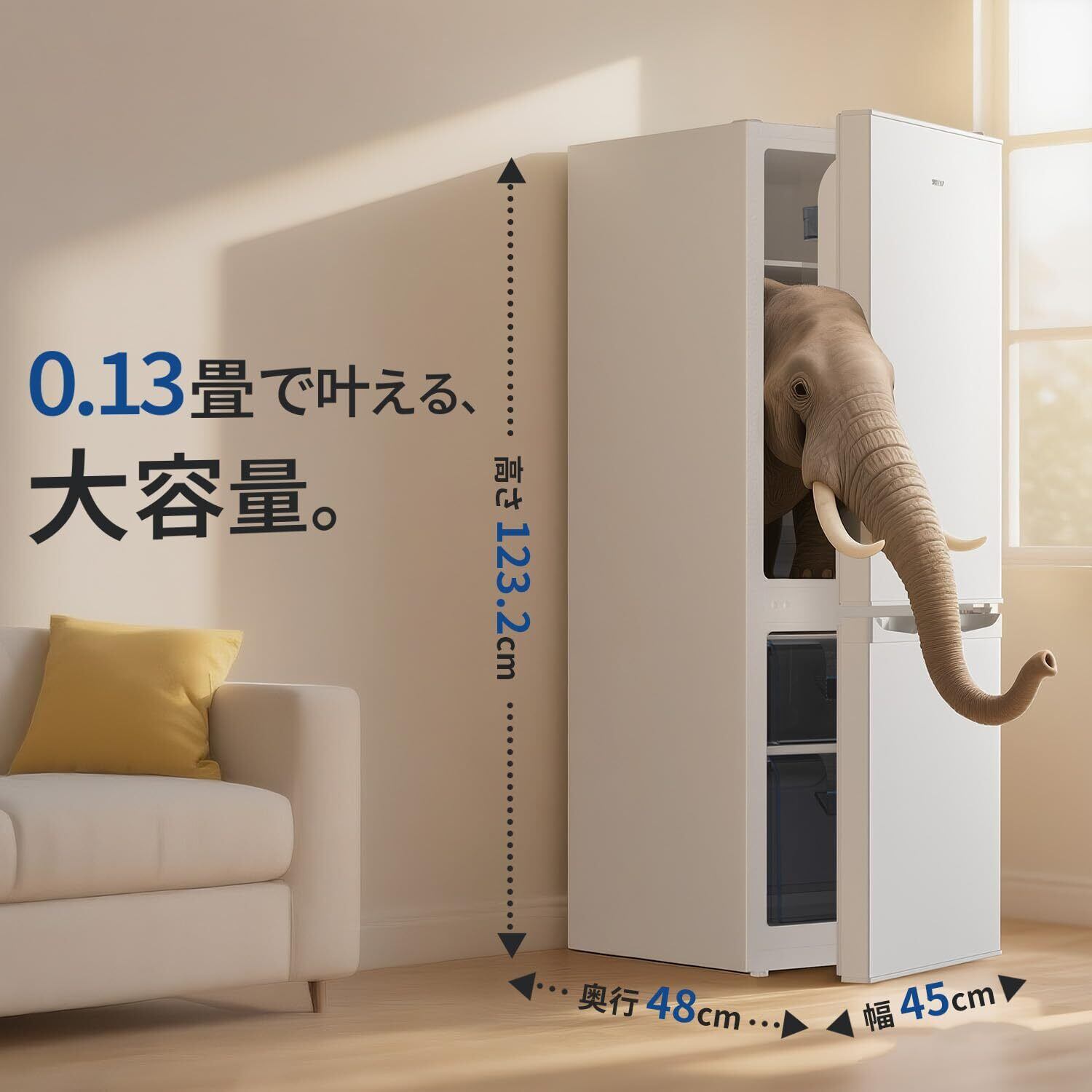 【省スペース超薄設計】 「冷蔵庫を置く場所がない…」→本品は幅わずか45cmの超スリムボディ。キッチンの狭い隙間や細い廊下にもすっきりフィットします。設置に必要な面積は約0.13畳分。マンションやアパートの限られた空間でも、圧迫感を感じさせず、すっきりとお使いいただけます。