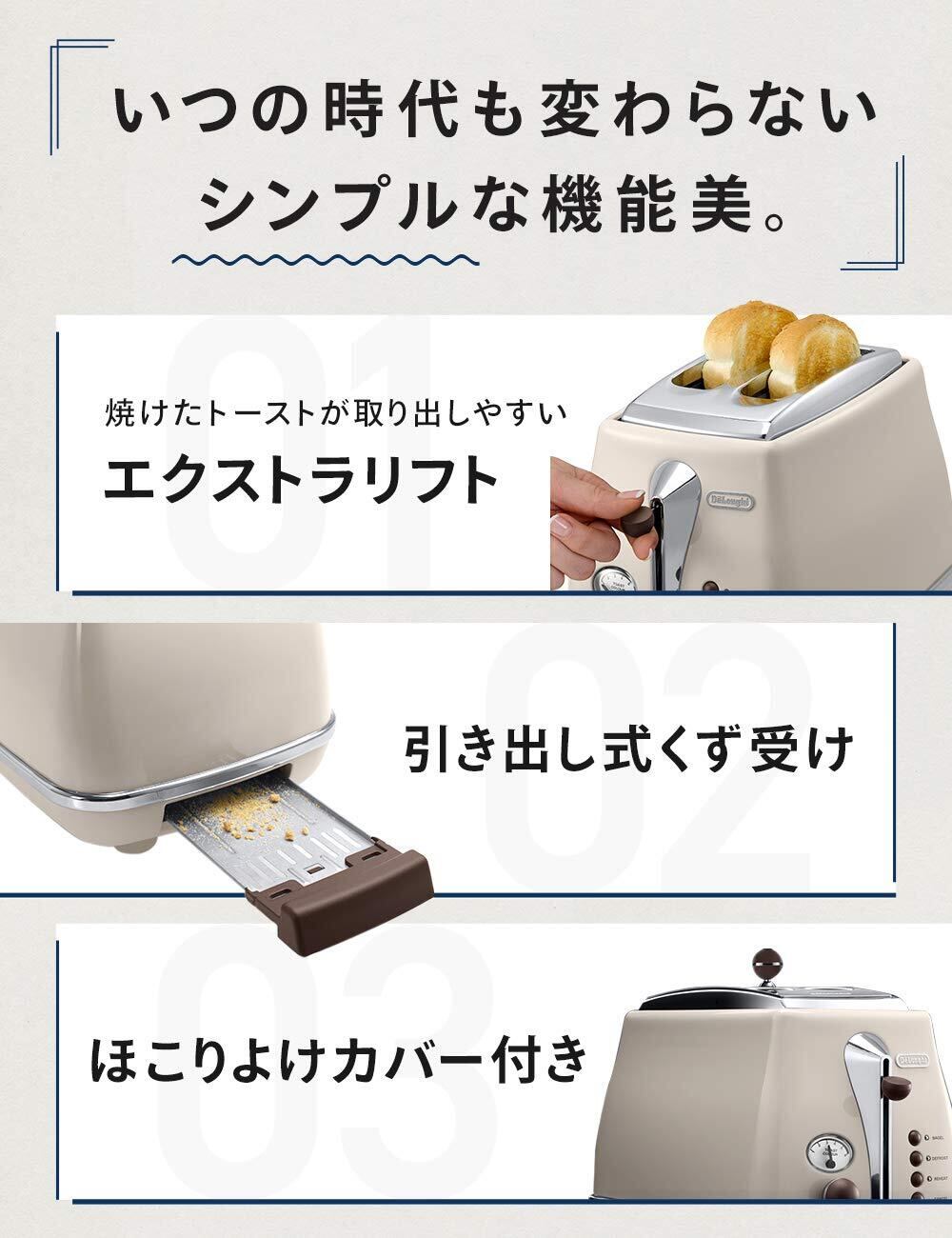 【在庫セール】De'Longhi (デロンギ) ポップアップトースター アイコナ・ヴィンテージ CTOV2003J-BG トースト 食パン 片面焼き可能 4~10枚切り 焼き目調整6段階 埃よけカバー付属 簡単お手入れ [ドルチェベージュ] デロンギファミリー登録で3年