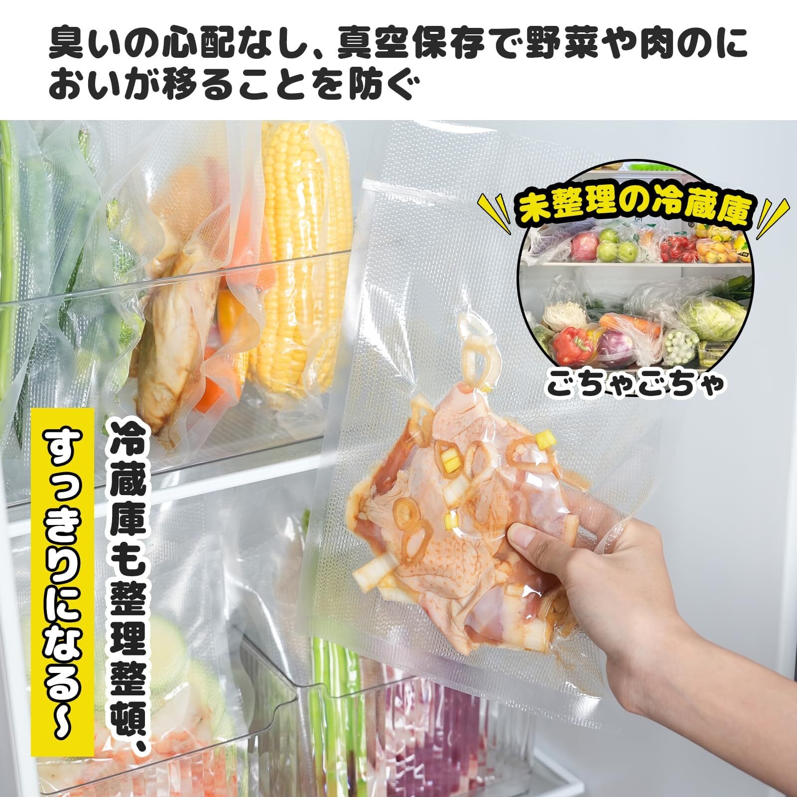 【鮮度長持ち・食材ロス削減】真空パック袋の中の空気を取り除くことによって食品の酸化、雑菌の増殖を抑え、食品の鮮度が長持ち可能で、匂い移りもなく、食品保存に最適、食材ロス削減・コスト効率化を実現でます。※食品を保存する際は、真空パックした後、冷蔵庫や冷凍庫にご保存する必要があります。【アフターサービス・安心購入】商品の管理に最善を尽くしておりますが、お届けした商品について疑問がありましたら、お気軽に弊店までご連絡いただけますようにお願いします。