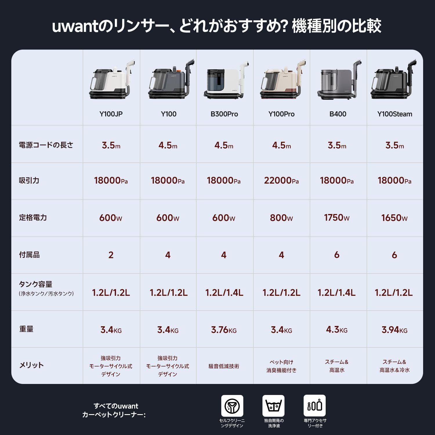 uwant スチームクリーナー スチーム、温水、常温の3つのモードスイッチリンサークリーナー 100℃蒸気噴射 18000Pa超強吸引力カーペットクリーナー 60℃加熱お湯カーペット掃除 5種類のプロ仕様ブラシ&専用洗浄液付き 2-in-1大容量水タンク 81㎡の清掃範囲 マットレス/ペット用シート/ぬいぐるみ/車用 1年 交換のみ・修理なし