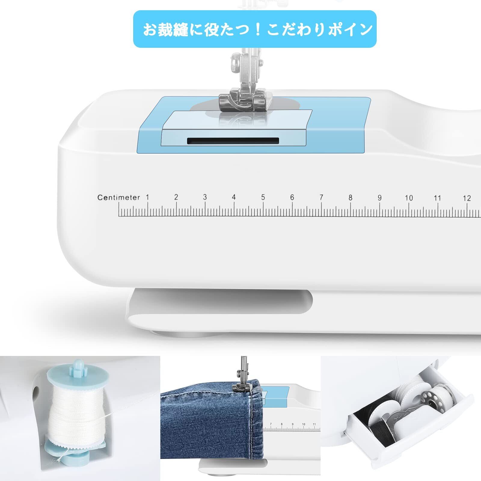 ミシン 初心者向け 電子ミシン 12種類の縫い目 返し縫い機能 2way給電 日常手作り縫製 42PCS裁縫セット付き スピード調整可能 持ち運び便利 日本語説明書付き