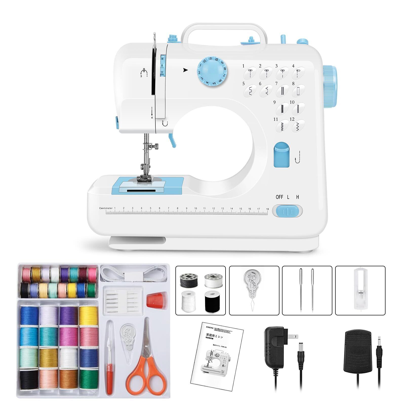 【特価商品】ミシン 初心者向け 電子ミシン 12種類の縫い目 返し縫い機能 2way給電 日常手作り縫製 42PCS裁縫セット付き スピード調整可能 持ち運び便利 日本語説明書付き