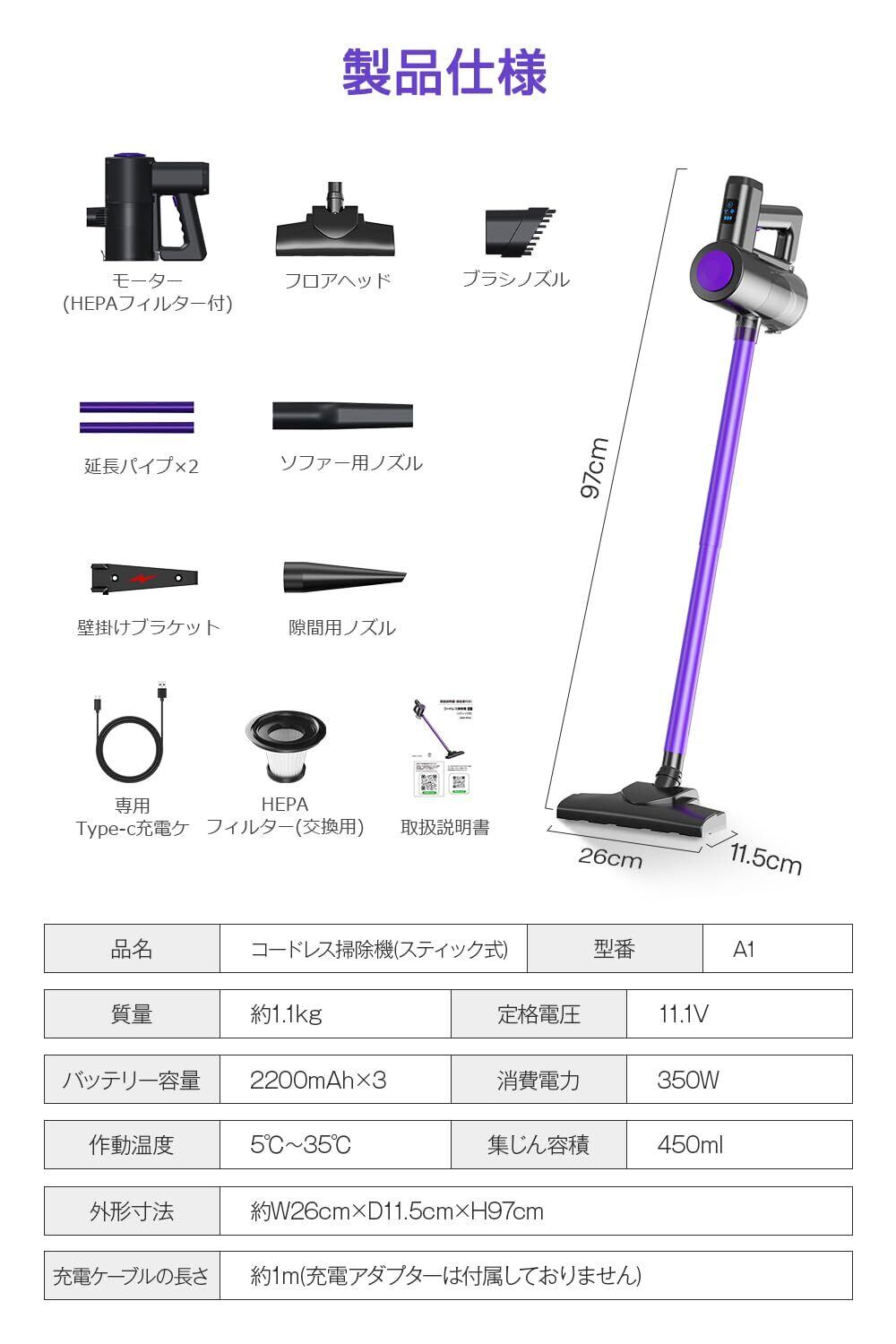 掃除機 コードレス 【2026進級版&26000pa超強力吸引&LCDタッチディスプレイ】 コードレス掃除機 サイクロン式 45分連続稼働 壁掛け収納&充電 ハンディークリーナー スティックークリーナー Type-C充電式 2段階の吸引力 自立可能 左右360°上下90°回転 伸縮型パイプ HEPA多重濾過 ワンタッチゴミ捨て 多機能ノズル付き カーペット/カーテン/ソファ/車に適用