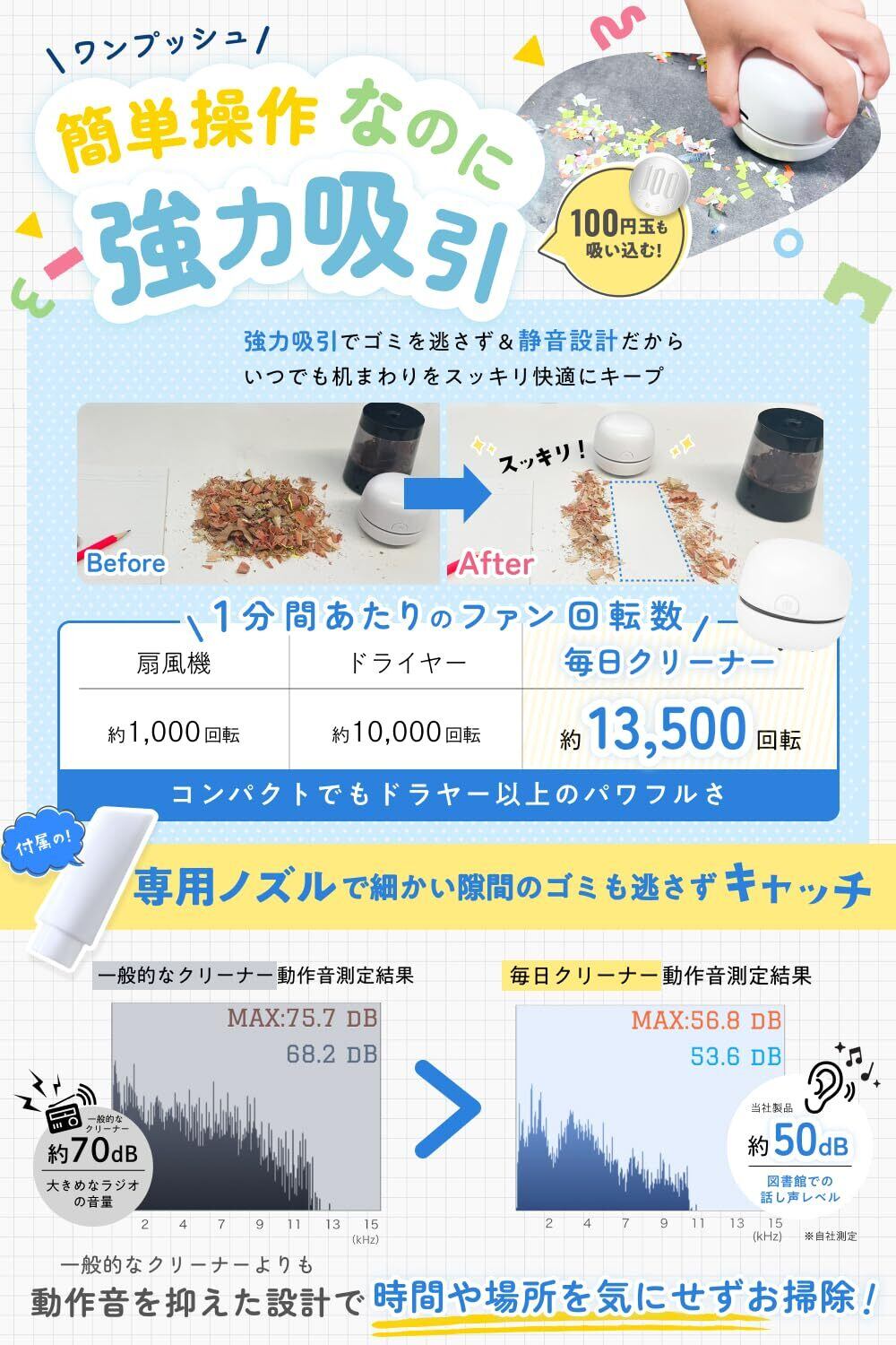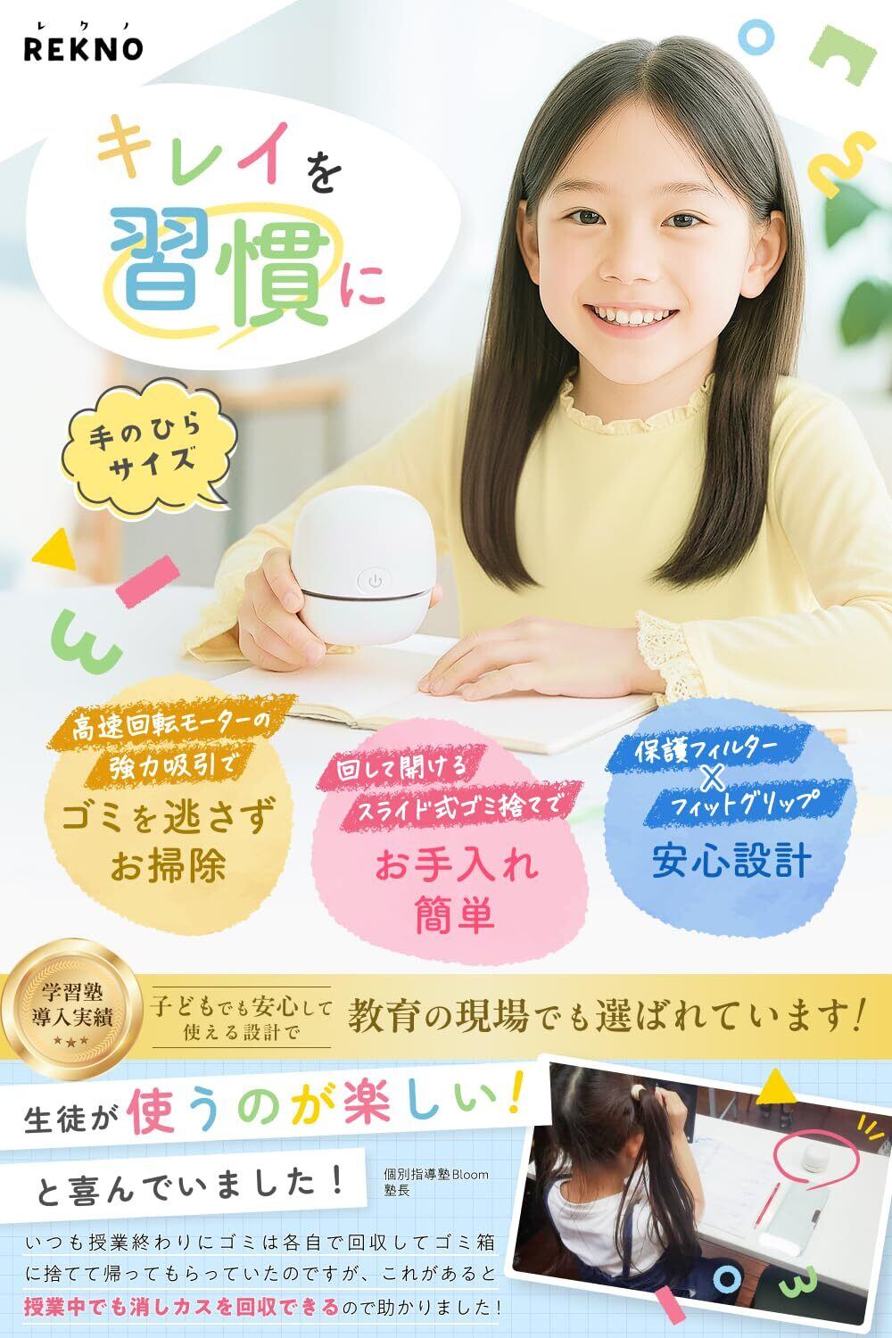【学習塾導入モデル】 充電式卓上クリーナー [ターボ吸引×ワンプッシュ操作でゴミを逃さず簡単お掃除] 消しカスクリーナー ミニデスク掃除機 (ホワイト)