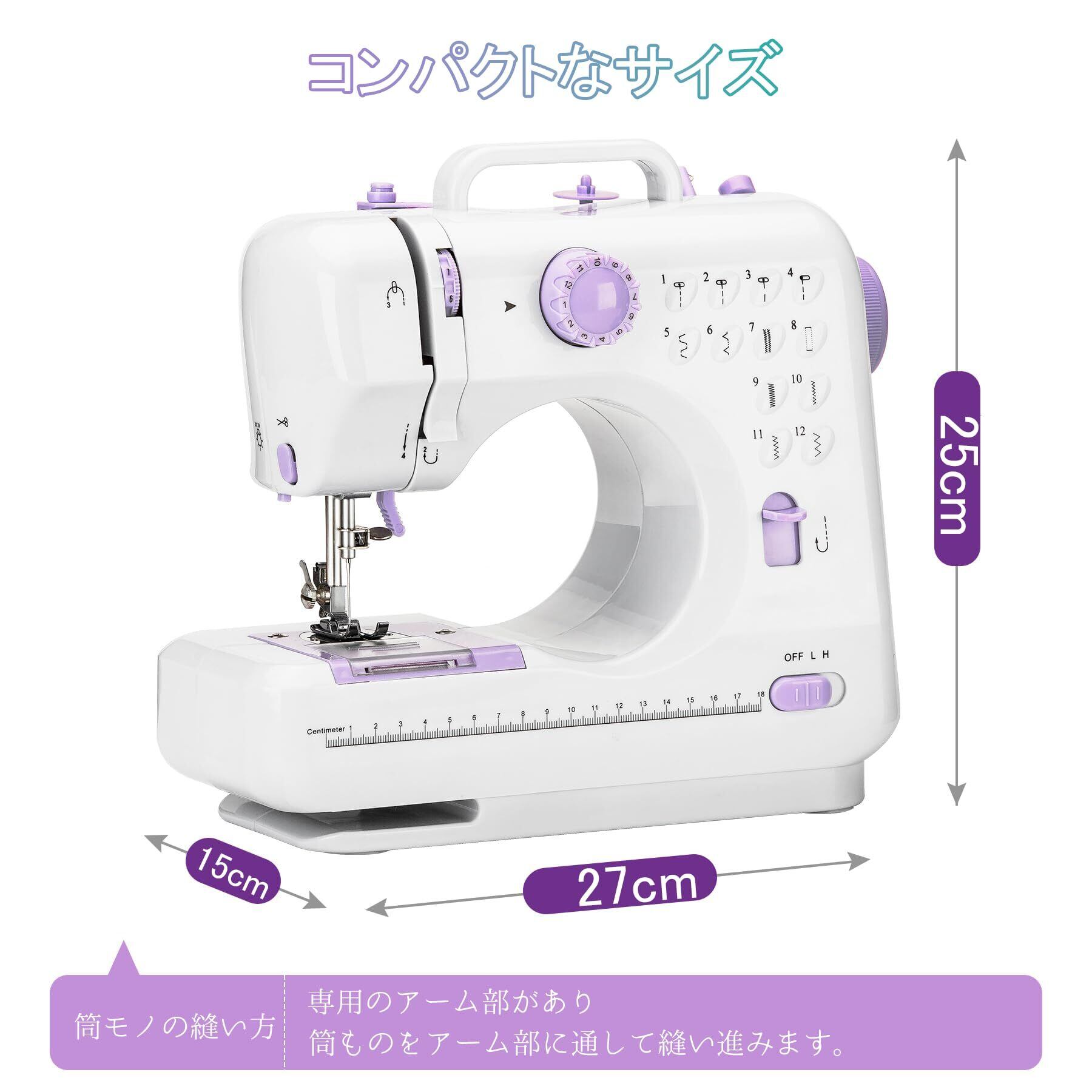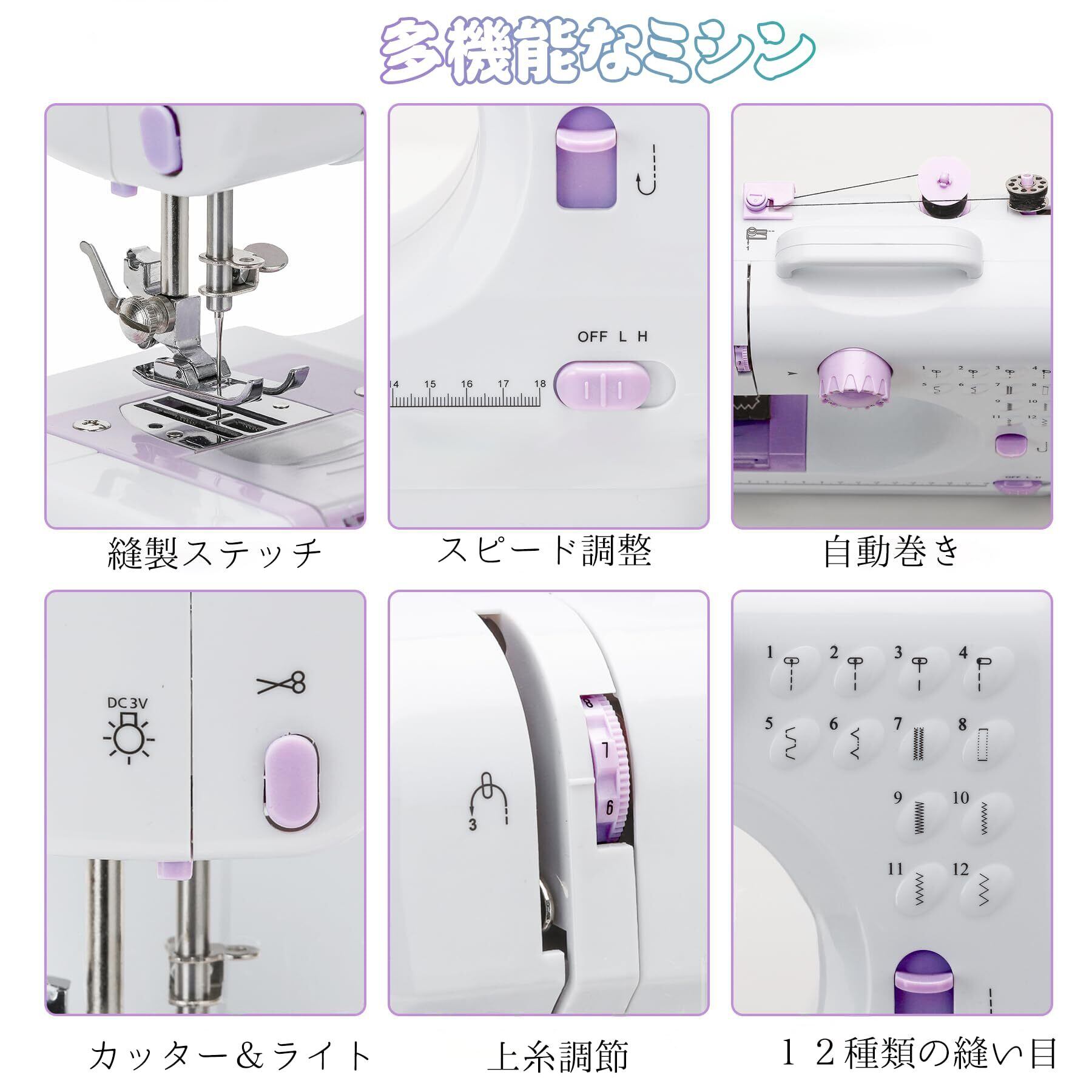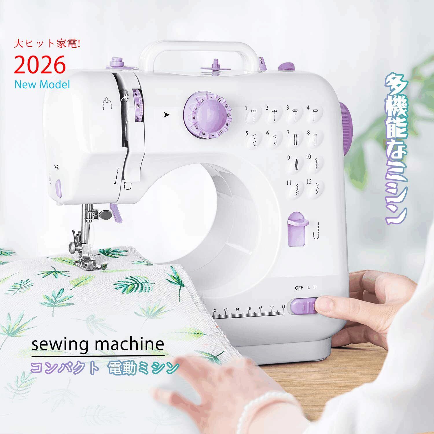 【2022最新】ミシン 電動ミシン 初心者向けのソーイング 12種類の縫い目 返し縫い機能 2way給電 趣味・DIY手作り スピード調整可 42PCS裁縫用アクセサリー 日本語説明書付