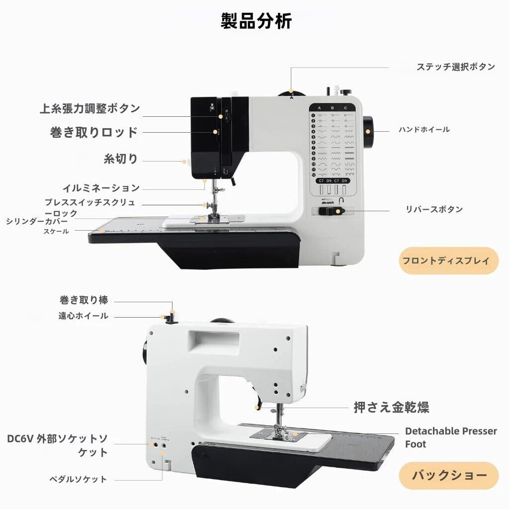 電子ミシン 全自動ミシンです 多機能 工業用 Tuduzo 38ステッチ 拡張テーブル付き ナイトライト ポータブル 頑丈 家庭用 手芸 裁縫 洋服製作 あらゆる縫製対応 初心者 上級者向け