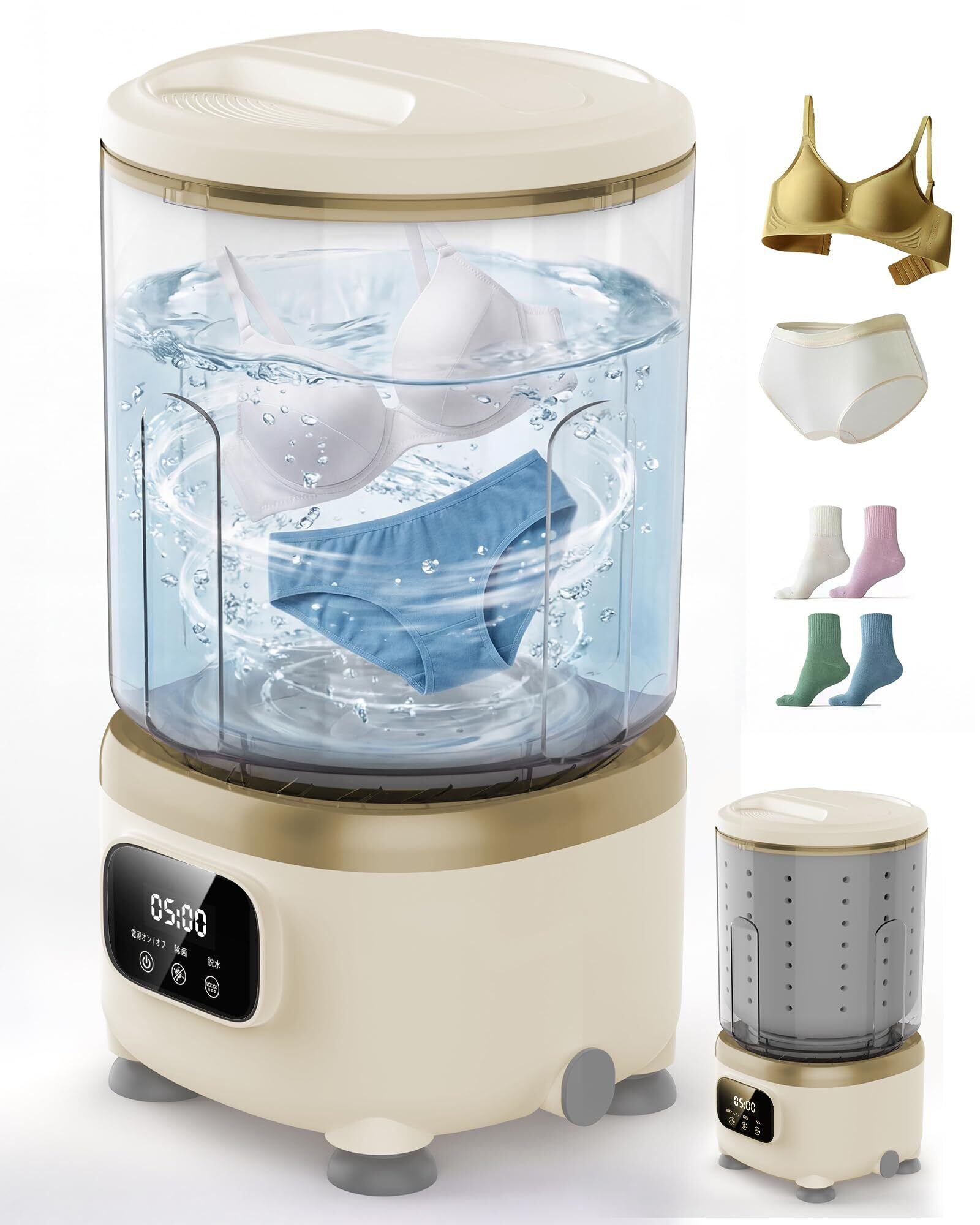【新着商品】全自動ミニ洗濯機 [新しいアップグレード] 内衣専用設計【洗い脱水の一体化・ブルーライト除菌機能付・軽量低騒音】小型 充電式 ポータブル洗濯カップ 脱水機能付き 3分脱水/5分洗浄 正逆転可能 2L容量 ワンタッチ操作 肌着洗濯機 ベビー服/タオル/下着/靴下対応 一人暮らし/自宅用/出張/旅行に最適 (オフホワイト)