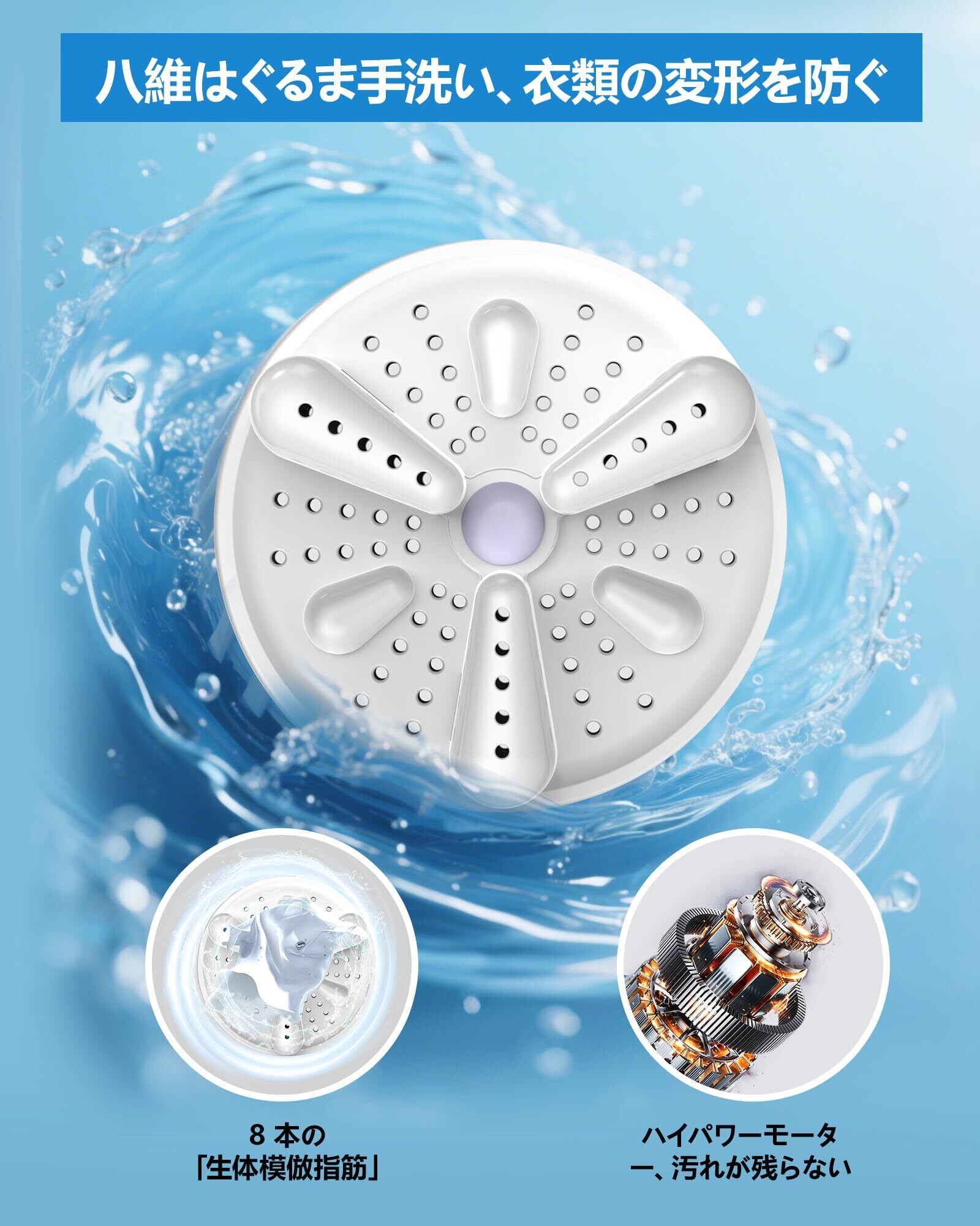 特徴 360度回転洗浄テクノロジー, 3つの洗濯モード・除菌機能付き, USB充電式・超軽量コンパクト設計, 洗脱一体型, 高効率
