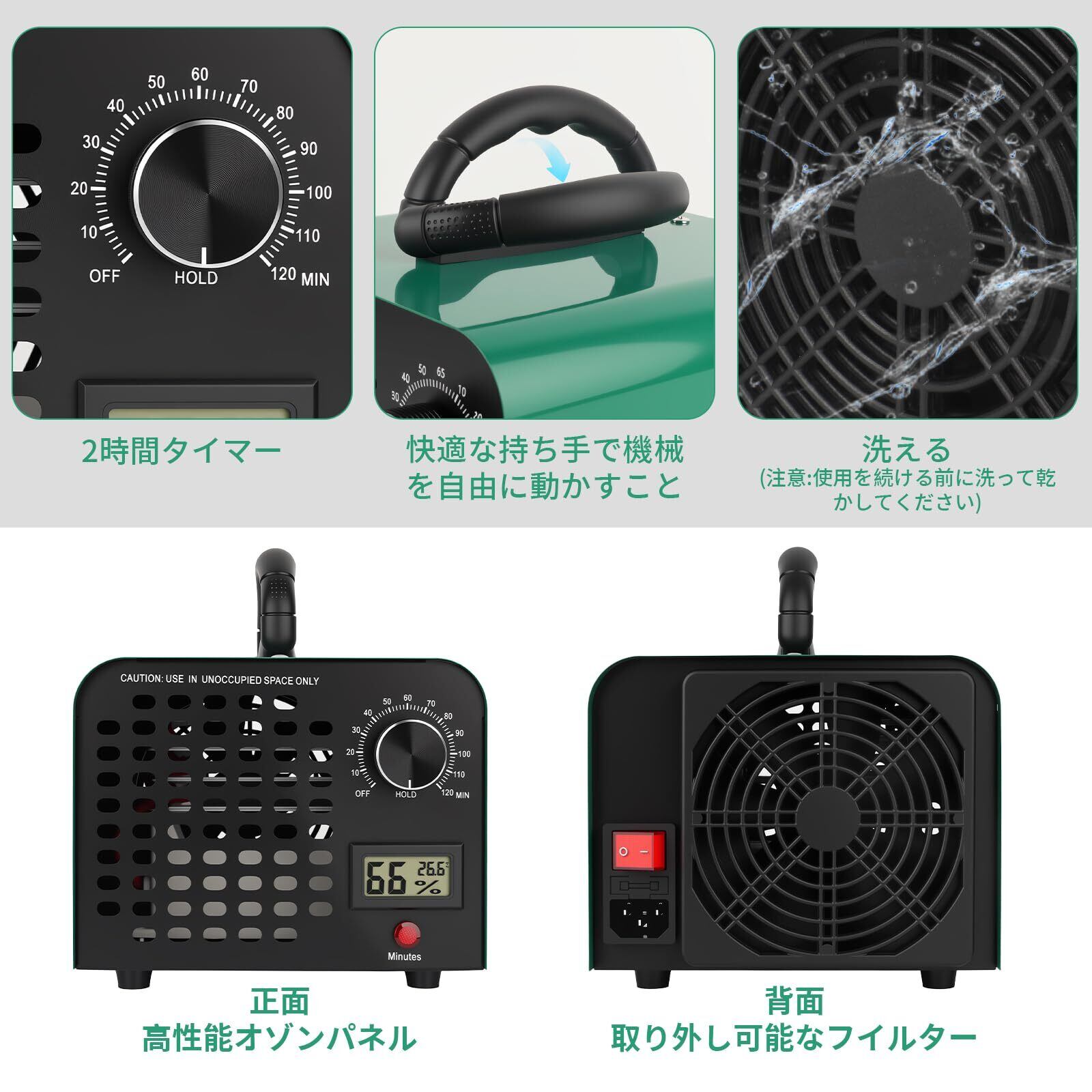 【2022最新】【強力80g/h】オゾン発生器 脱臭機 業務用 家庭用 オゾン発生器 除菌 消臭 ウイルス対策 温湿度計付き 大空間対応 タイマー機能 静音設計 日本正規品