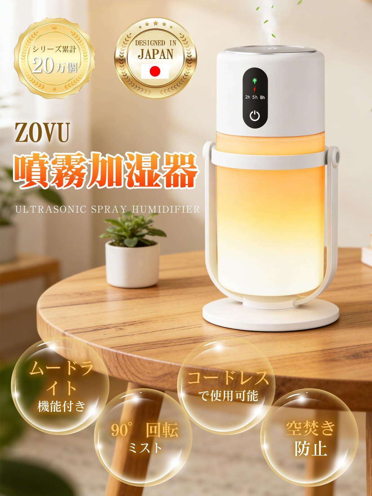 卓上加湿器【医師開発・監修】加湿器 小型【2026新モデル・50W以上の人が使用し推奨・多機能】超音波式 ダブル噴霧 抗菌 90°回転ミスト 20dB静音 大容量バッテリー内蔵 コードレス アロマ対応 暖光LED 明るさ調節可能 タイマー機能 空焚き防止 持ち運び便利 省エネ 350ml大容量 次亜塩素酸水対応 車載/寝室/オフィス/リビング対応 乾燥/花粉症/肌荒れ対策 ギフトにも最適