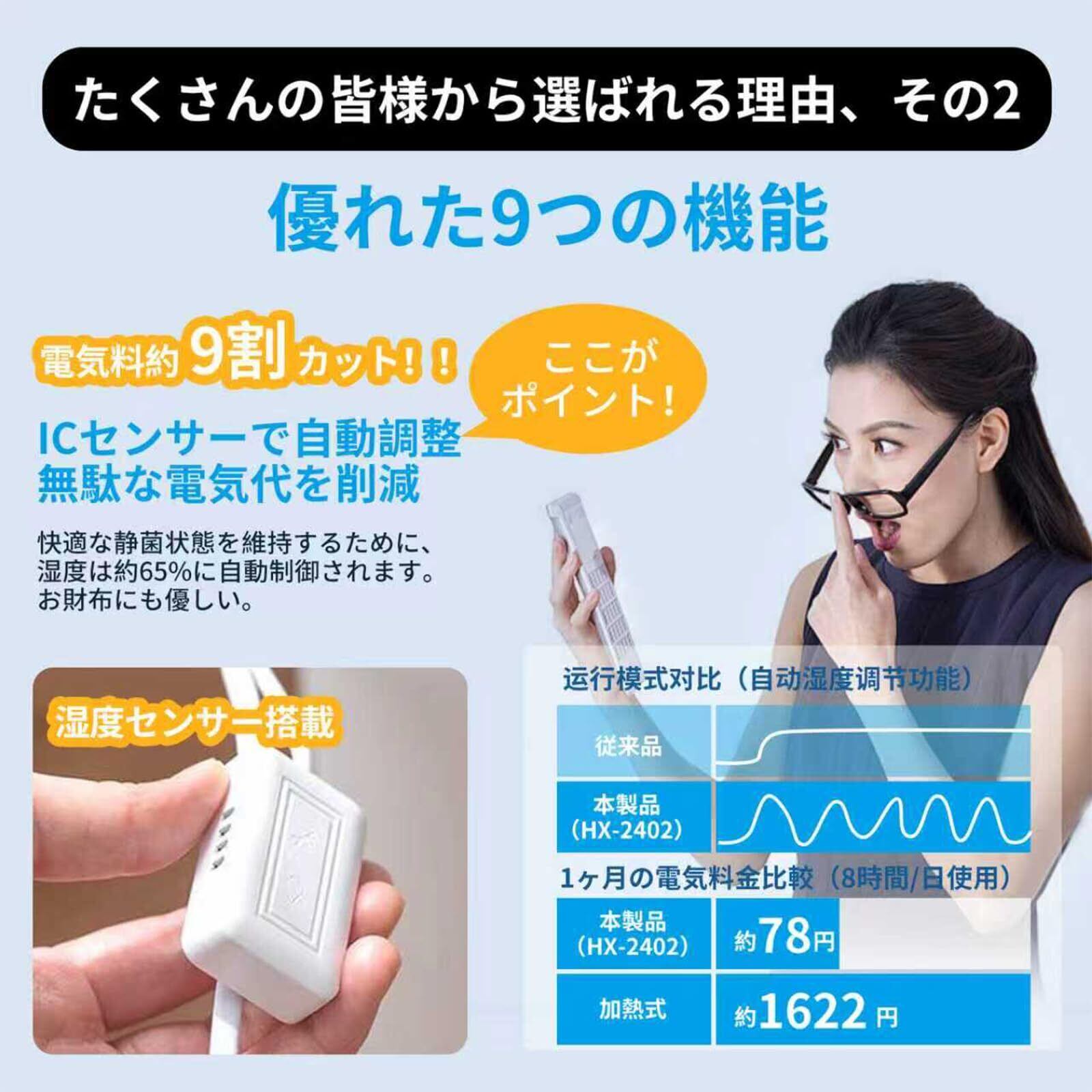 【湿度設定&タッチパネル&リモコン対応】この加湿器は、ただ加湿するだけでなく、お部屋の乾燥具合に合わせて細かく湿度を設定することができます。設定した湿度に達すると、自動で噴霧が停止するため、過剰な加湿による結露を防ぎ、カビの発生を抑えて、健康で快適な生活環境を維持します。また、タッチセンサー式の操作パネルを採用しており、軽いタッチで電源のオン/オフや運転モードの切り替えが可能です。さらに、付属のリモコンを使えば、ソファやベッドの上でくつろぎながら、すべての機能を簡単に遠隔操作することができ、より一層便利にお使いいただけます。