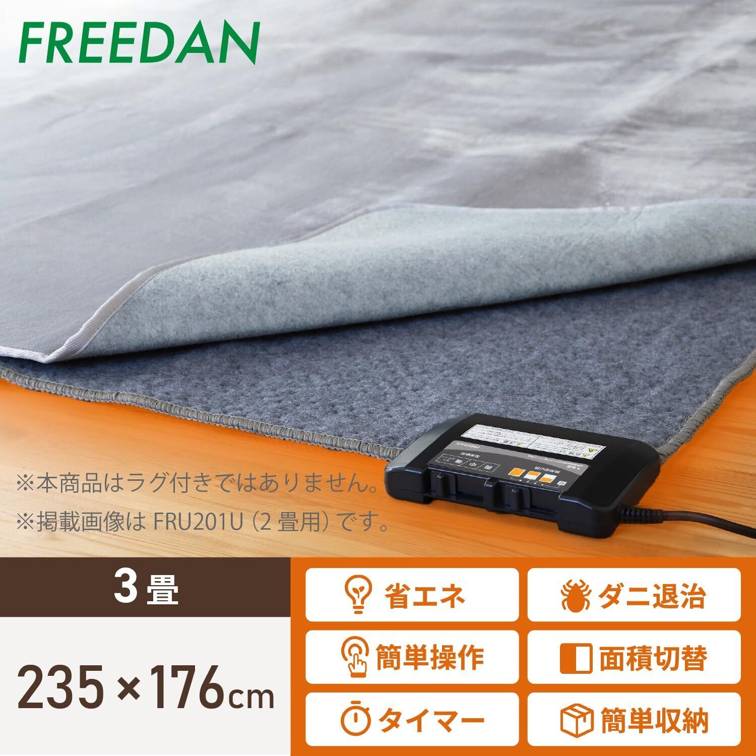 フリーダン ホットカーペット 3畳 本体 約235×176cm 長方形 温度調整可能 切り忘れ防止タイマー(8時間自動OFF) 暖房面2面3通り切換 ダニクリーン スライド式温度調節 電気カーペット FRU301UH フリーダム