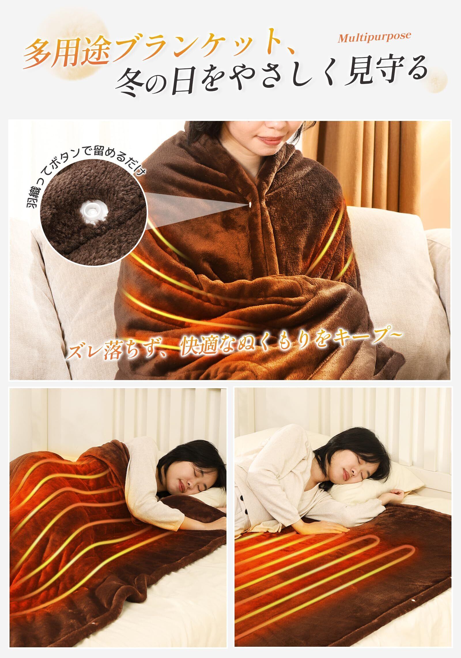 【大判サイズ・多用途設計でギフトにも最適】190x130cmのダブルサイズで、シングルはもちろん、ダブルでもゆったり使える極上の電気毛布。ソファでの肩掛け、就寝時のホットカーペット、デスク作業時の膝掛け毛布はもとより、車中泊やキャンプまで、多様なシーンで温かく守ります。❥この冬、ご家族や大切な方へのプレゼントに、温もりと安心を届ける「使えるギフト」です。1枚あれば寒くて寝つけないがなくなります!