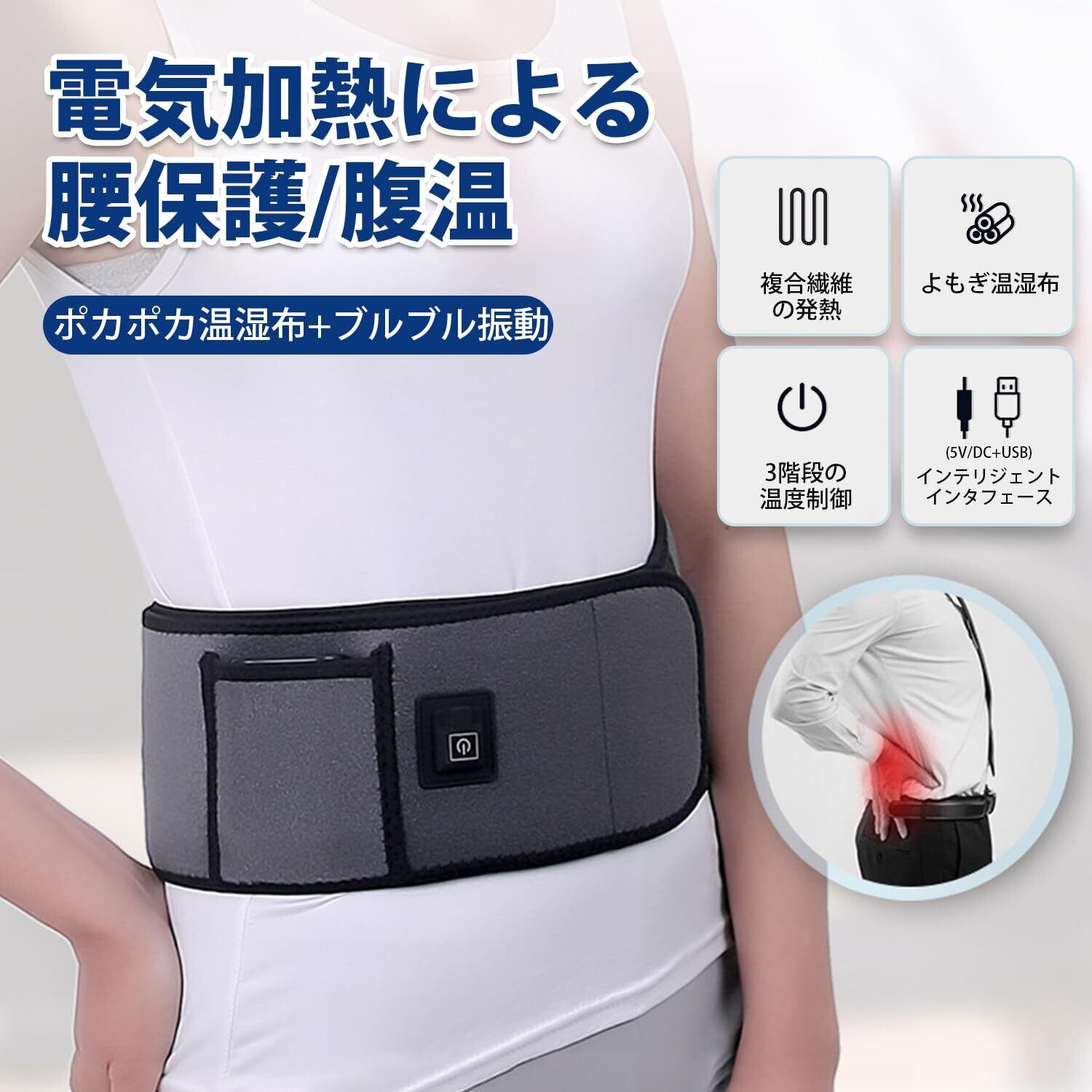 「温度3階段や振動6階段調整可」 PENIOR 電熱腰ベルト 複合繊維発熱 腰 ヒーター サポーター 電熱ベルト 超薄軽 電気加熱 ウエスト 護腰 暖宮 腹部温熱 月経 お腹 USB給電 フリーサイズ グレー
