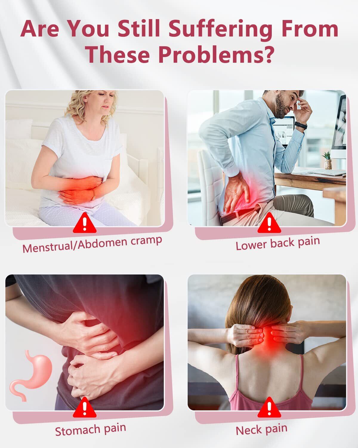【多機能ホットベルト】: 痙攣していますか。OVIFMポータブル腰サポーターはすぐに大量の助けを提供することができます。3秒以内に急速に加熱し、わずか5分で加熱温度が60°C(140°F)に達することができます。子宮を温め、腰を守り、胃を温めることができます。これらは生理期、背中、腹部、胃部、首部の不快感を緩和することができます。