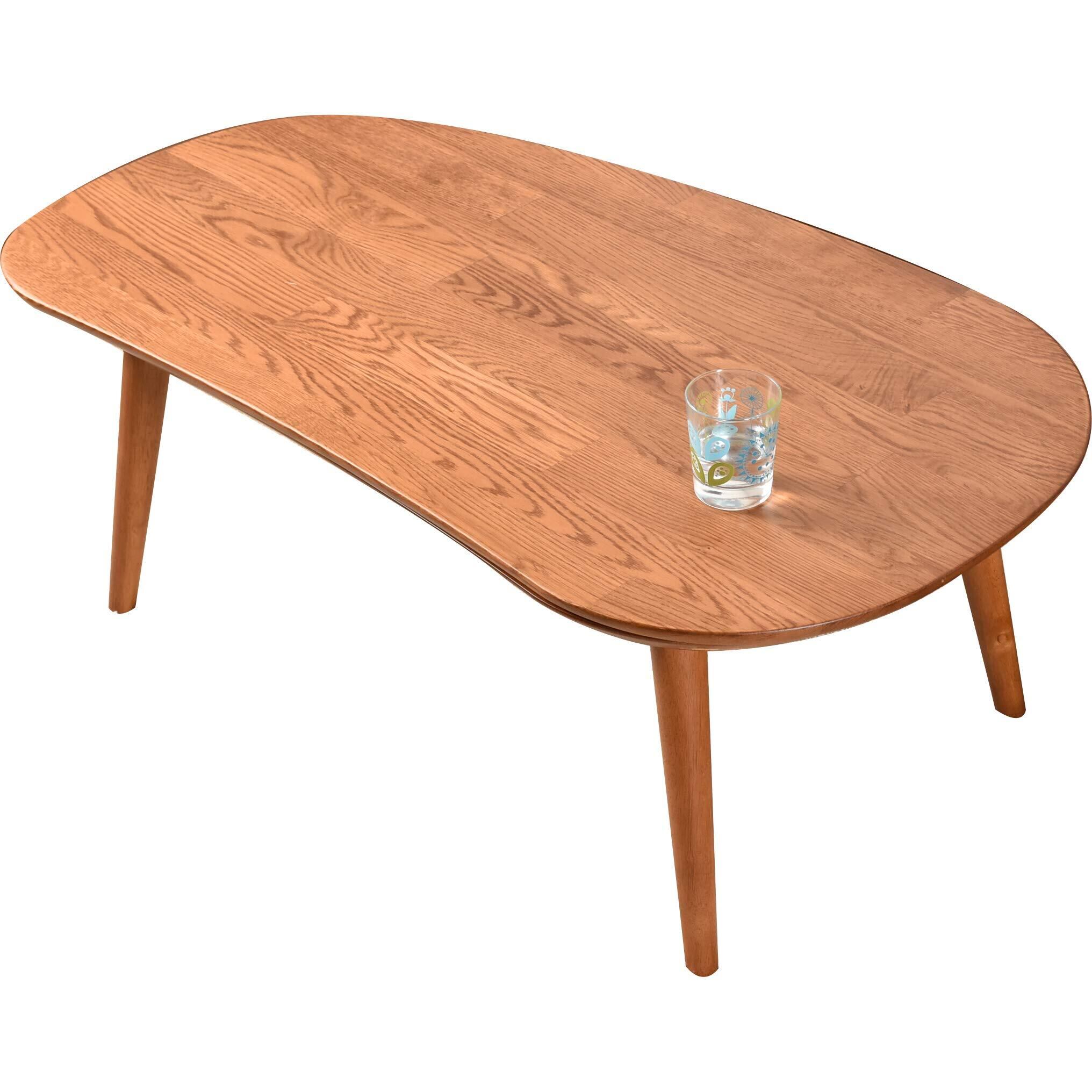 天板はおしゃれな丸みのある形状。オーク突板仕様。年中通してリビングテーブルとしてご利用いただけます。
