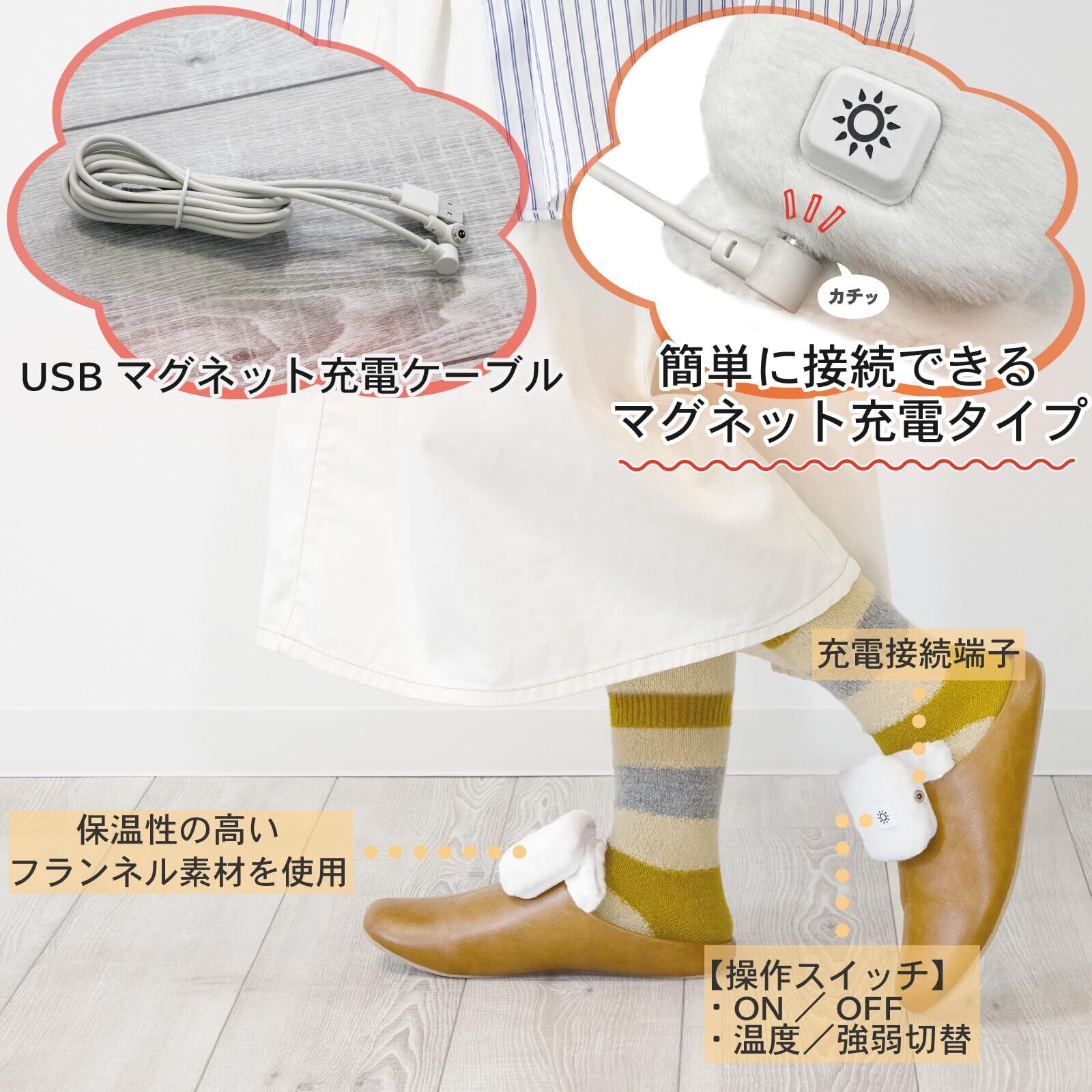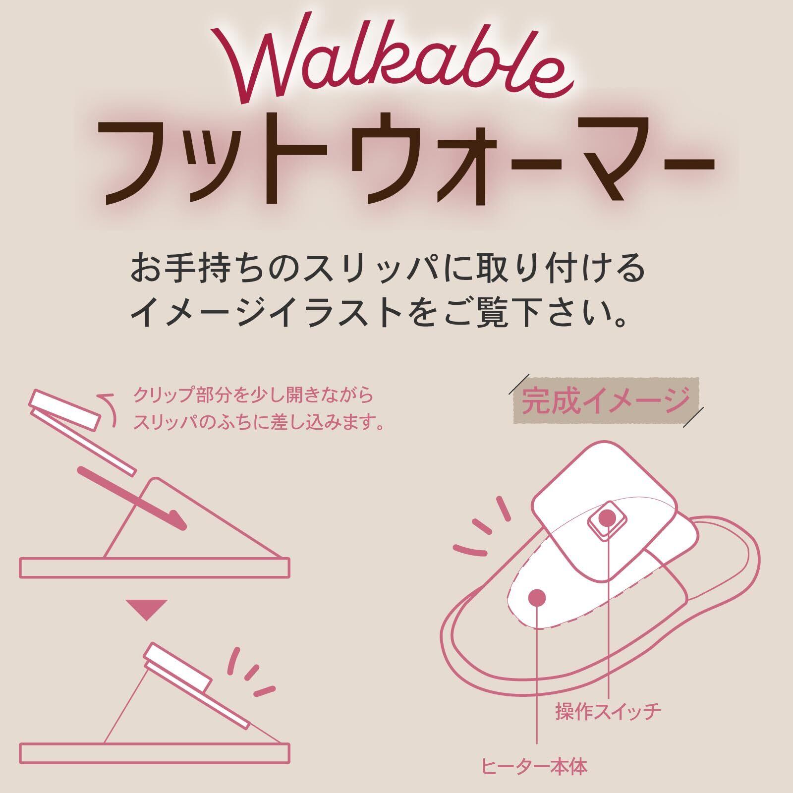 【あしもとあったか】お手持ちのスリッパに装着するだけであしもとあったかフットウォーマー。コードレスで使用できるので、つけたままいつでも気ままに、自由に動けます。