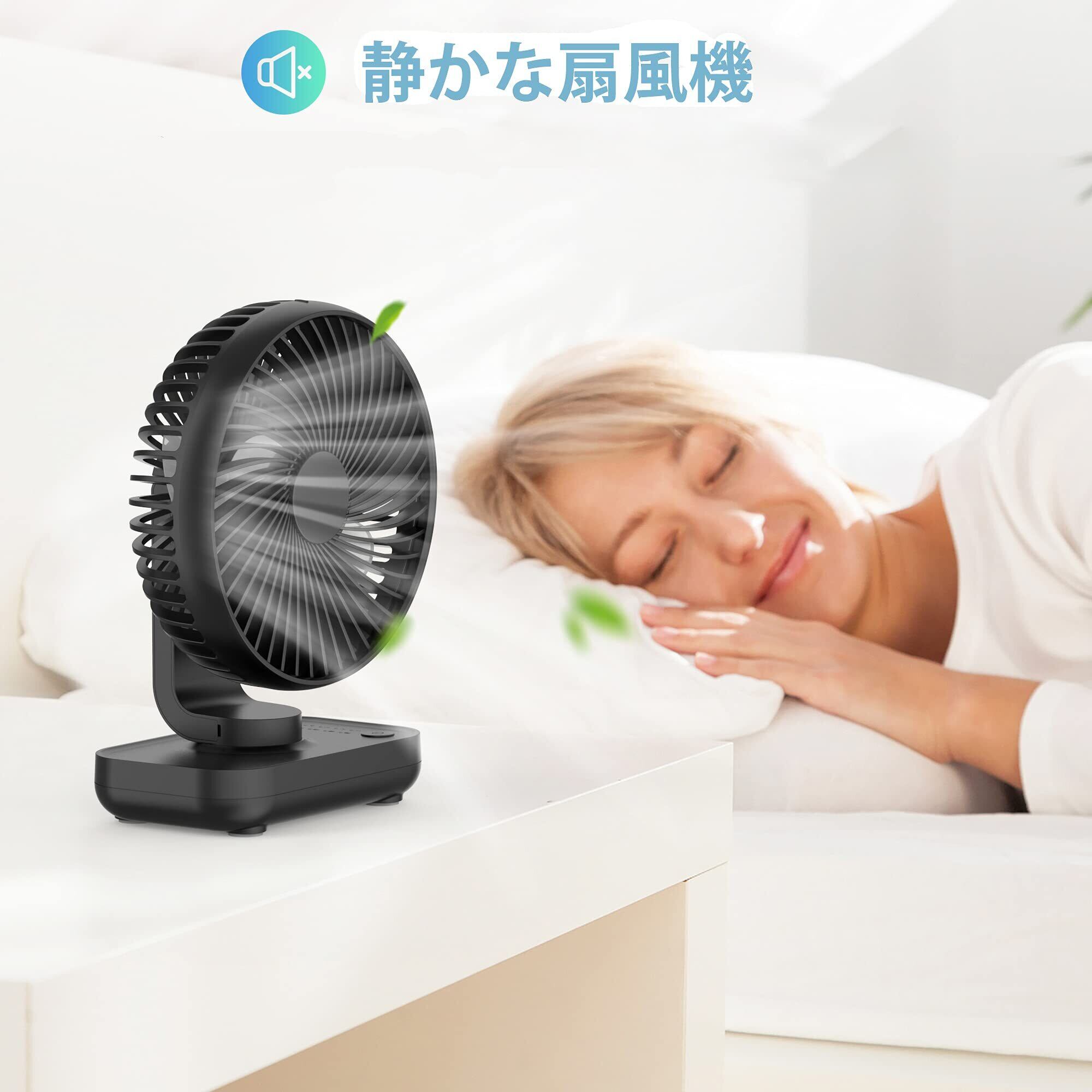 充電式卓上扇風機 静音 USB 小型 冷風機 4000mAhバッテリー内蔵 4段階風量 ポータブル 強力 大風量 軽量 省エネ 部屋 宅内/外出 便利 コンパクト 車 オフィス 熱中症対策(ブラク)