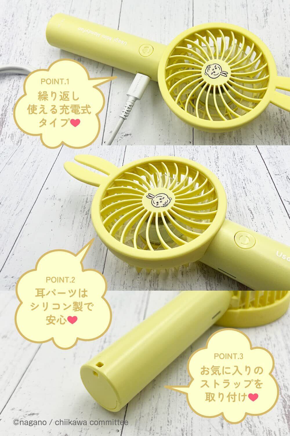 多摩電子工業 ちいかわハンディファン SQ-SK121LY-U (うさぎ レモンイエロー) シリコン製の耳カバー 取外し可能 スタンド付属 風量調整機能 軽量&コンパクト手持ち扇風機 卓上扇風機 USB充電 Type-C対応