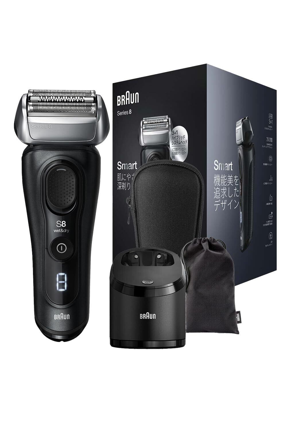 ブラウンのシリーズ8で、シェービングの次のレベルへ。 肌にやさしく、パワフルなシェーバー。ブラウン独自の音波振動テクノロジーを搭載しています。 10,000回の微振動で、より多くの毛をとらえ、肌にやさしく滑らせます。 肌へのやさしさを追求しました。この電気シェーバーは、顔の凹凸に合わせて40度回転するヘッドを備えています。 剃りにくい部分でもしっかり剃ることができます。洗浄機で、毎日新品のようにシェーバーを使用できます。
