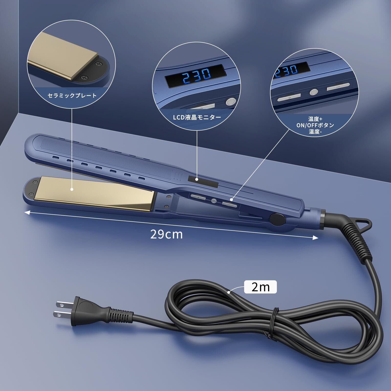 ストレート ヘアアイロン プロ仕様 【最大温度設定 230℃】 18段階温度調節 ストレート & カール 2way ヘアストレートナー 髪サロン ヘアケア 美容家電 360度回転コード 軽量 ポーチ付き 35mm プレート セラミック チタニウム コーティング ヘアスタイリングアイロン レディース 彼女 誕生日 プレゼント (ブルー)