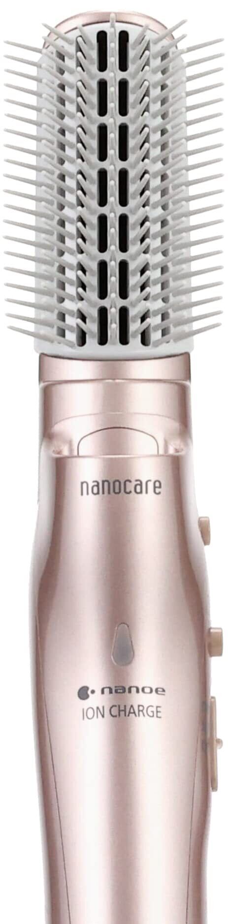 ●ナノイーで、 しっとりまとまりのある髪へ●Check!ナノイーとは?空気中の水分を超微細化した水分たっぷりのイオン。一般的なマイナスイオンの約1,000倍(体積比)の水分に包まれています。●イオンチャージで毛先までうるおう 本体前面のパネルを握るとナノイーが髪に付着しやすくなるので、毛先までうるおいます。●まるで美容院のブロー つややかにまとまる仕上がりへ 美容室のブローテクニックを再現 美容室のブローテクニックを再現したサロンブローブラシで毛先までしっかり、つややかにまとまる髪へ。●毛先が散らない、サロンブローブラシの秘密 はさんだ状態で、髪の内側、外側に温風があたるため、毛先が散らず、毛先までしっかりとらえてスタイリングできます。●髪の根元から簡単にボリュームアップ。ふんわりと立体感のある髪へ●スタイリングの仕上げに。根元や前髪、サイドをふんわり演出 髪の根元に風を届けやすい形状のボリュームアップブラシで、自然な印象へ。髪にふっくらとしたボリューム感を出すことで若々しい印象につながったり、ヘアアレンジの幅が広がったりと、多彩なスタイルを楽しむことができます。●1台で自由自在にスタイリング シーンに合わせて選べる5つのアタッチメントブラシ。ストレート・カール・ボリュームアップなど多彩なスタイリングが叶います。●1. クセ伸ばしやまとめ髪に「サロンブローブラシ」2. 前髪や根元の立ち上げ、トップのボリュームアップに「ボリュームアップブラシ」3. ストレートヘアや仕上げに「ワイドブローブラシ」4. カールスタイルに「太ロールブラシ」5. 髪全体の乾燥に「ノズル」●おすすめの効果的な使い方 5つのアタッチメントブラシと温風・冷風の使い分けで、プロのような仕上がりに。