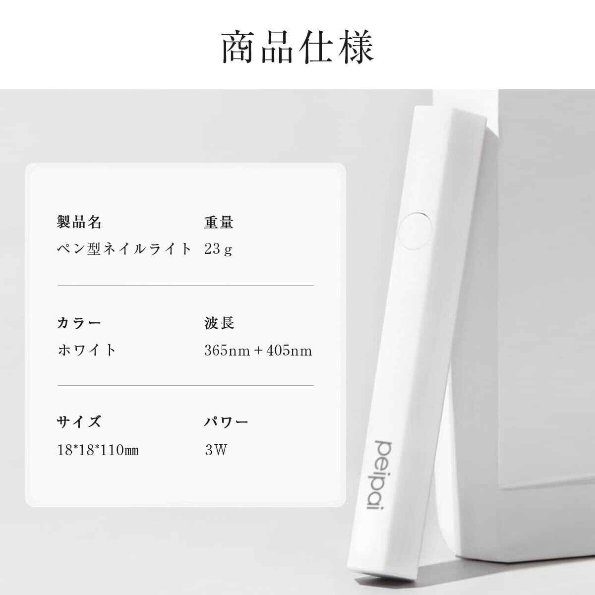【コンパクト&持ち運びラク】peipaiペン型ネイルライトは23gの軽量な設計であり、持ち運びが便利です。ペン型の形状で片手にしっかりとフィットするため、作業がしやすくなるという利点もあります。