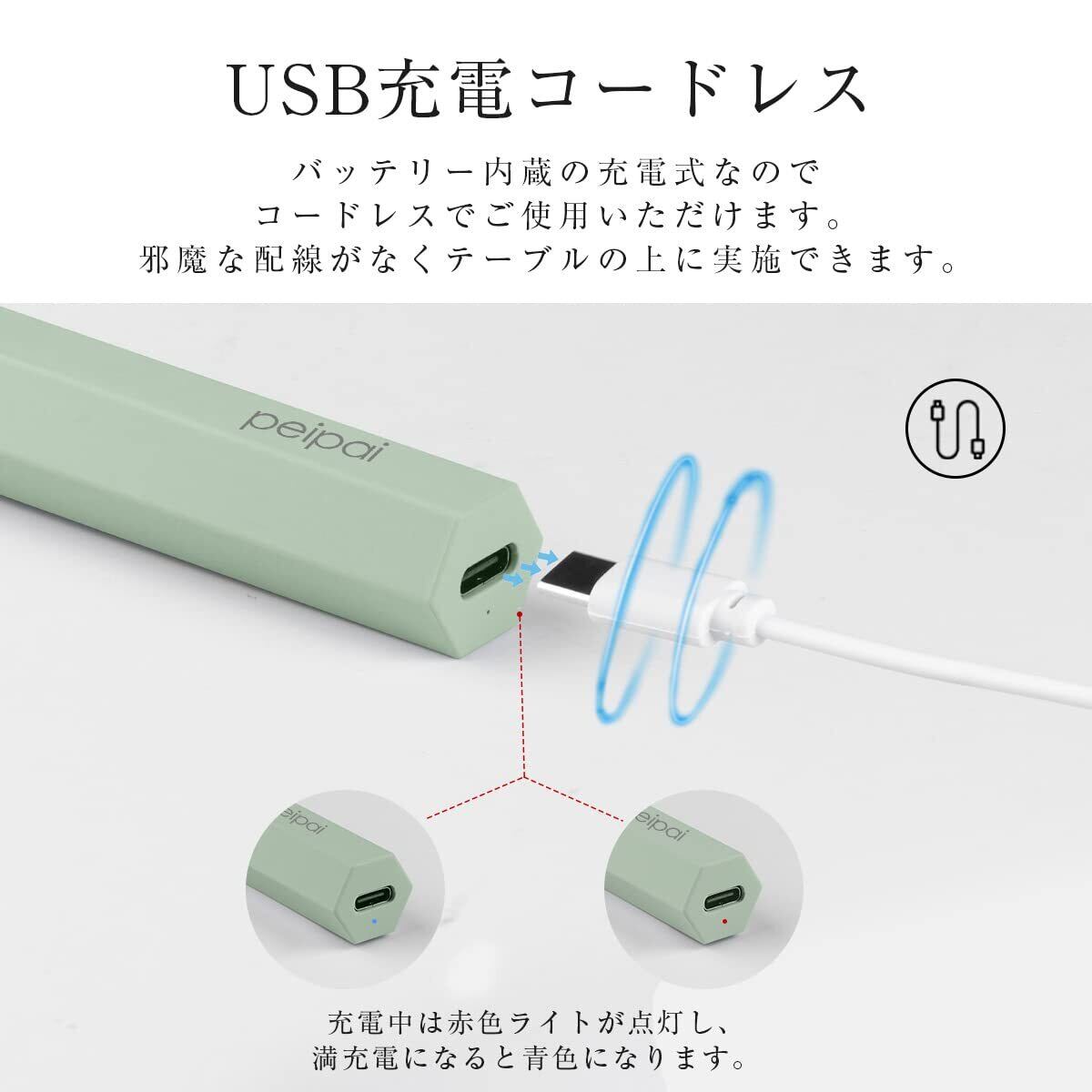 【USB充電コードレス】バッテリー内蔵の充電式であるため、電源コードなしでコードレスで使用できます。余計な配線がなく、テーブル上での作業がスムーズになるというメリットがあります。