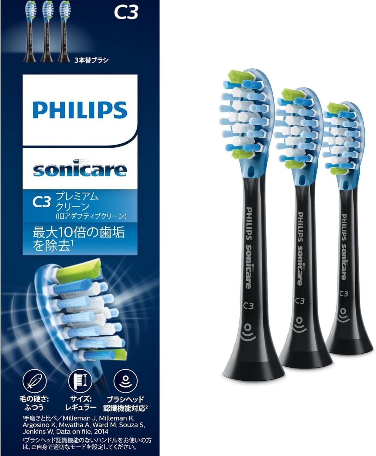 フィリップス 替えブラシ ソニッケアー プレミアムクリーンレギュラー (3本) 正規品 C3 HX9043/96 ブラック