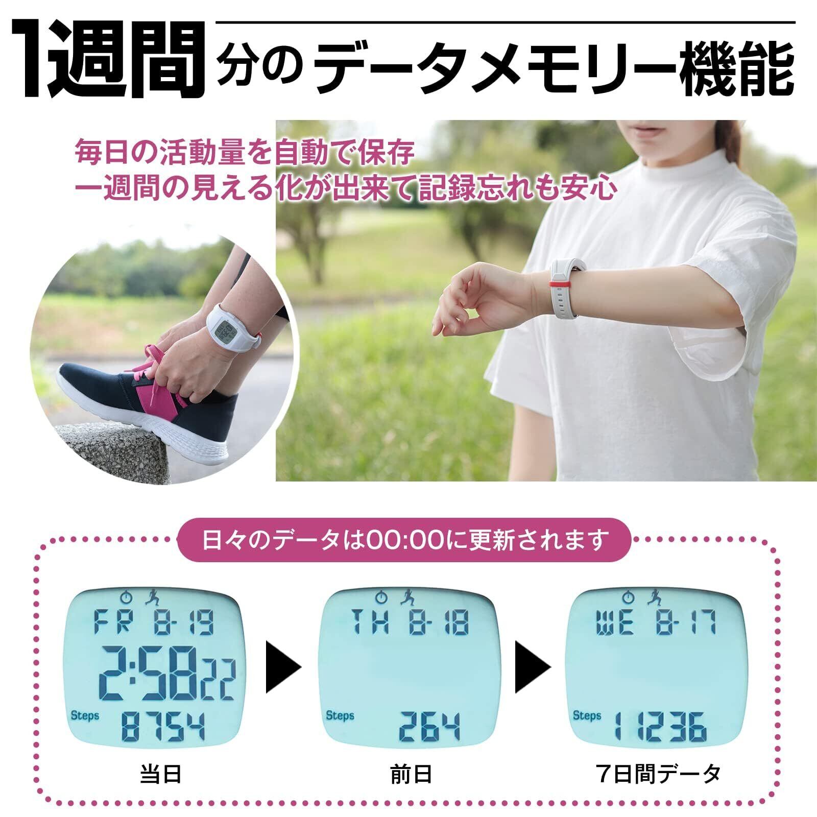 【データメモリー機能】歩数や走行距離、消費カロリーなどのデータを1週間分記録できます。これにより、自分の活動量を把握し、健康管理に役立てることができます。尚、歩数計は節電の為、毎日23時~翌日7時まで自動的にOFFになりますが使用する場合は手動でCボタンを押してONにすることができます。