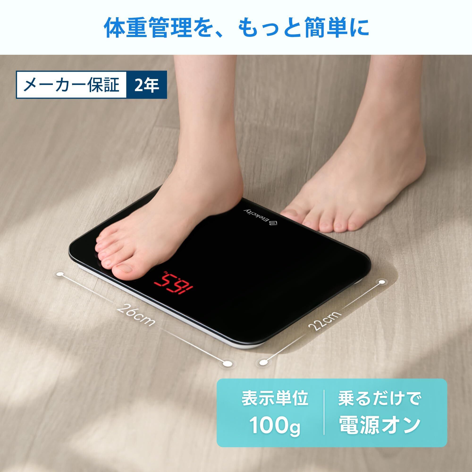 Etekcity 体重計 ヘルスメーター 2年間品質 コンパクトたいじゅうけい電源自動ON/OFF 小型 強化ガラス 電池付属 EB4010J ブラック