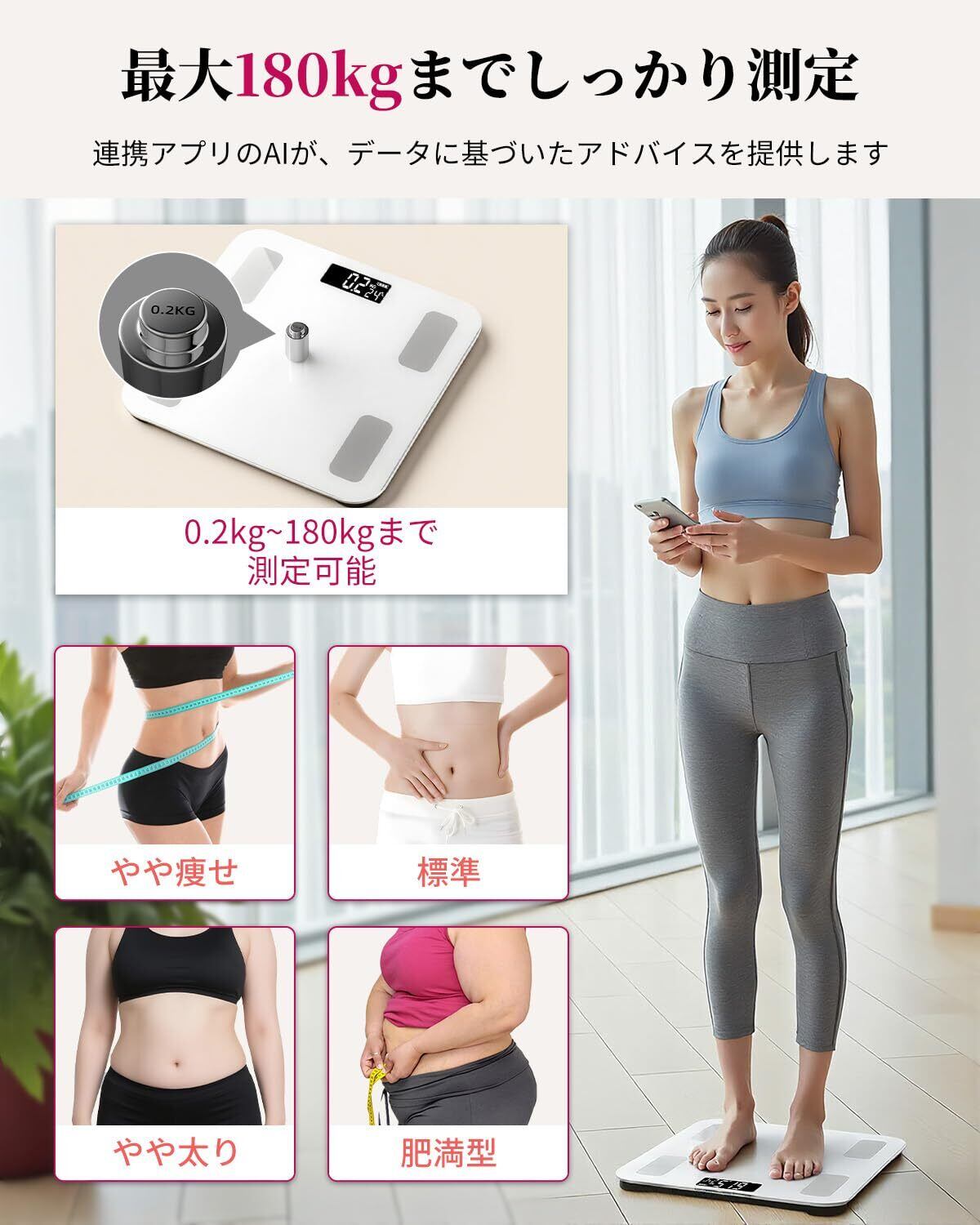 特徴 体組成分析、BIA技術、スマート連携