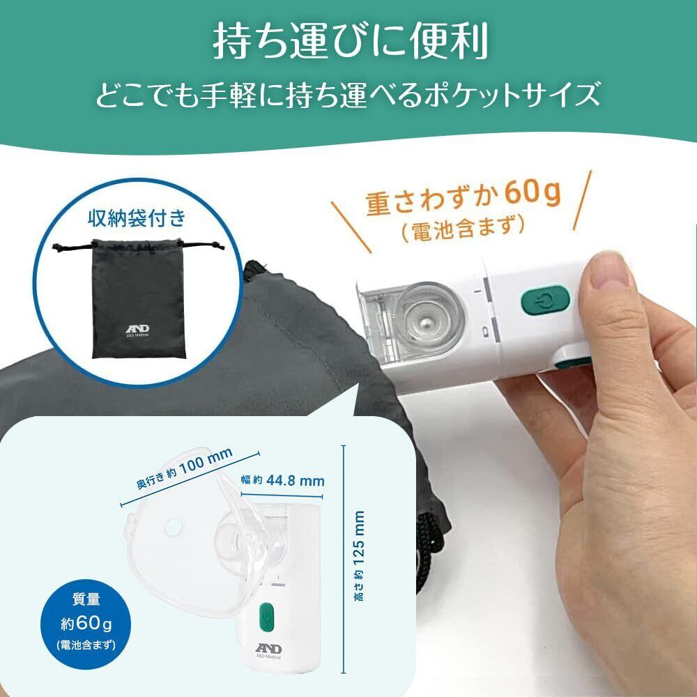 A&D ポータブル型 超音波式 吸入器 携帯用 鼻 喉ケア 生理食塩水 使用可能 UN-302ECO