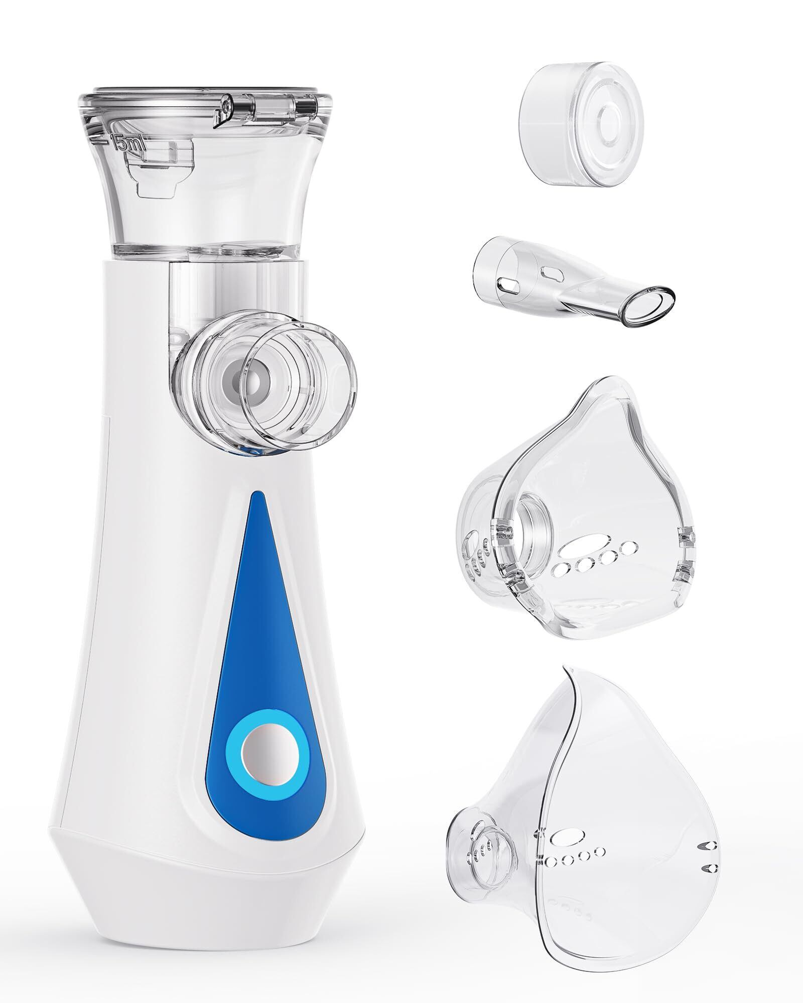 【革新型・薬液吸入用】Hygelink ネブライザー 吸入器 Type-C充電 超音波メッシュ式 吸入器 パワフル噴霧 2時間長時間運転 静音 軽量 自動洗浄モード 携帯便利 マスク 大人用/子供用とマウスピース付き家庭全員適用 収納袋付き ご自宅/外出先/移動中に対応 (ブルー)