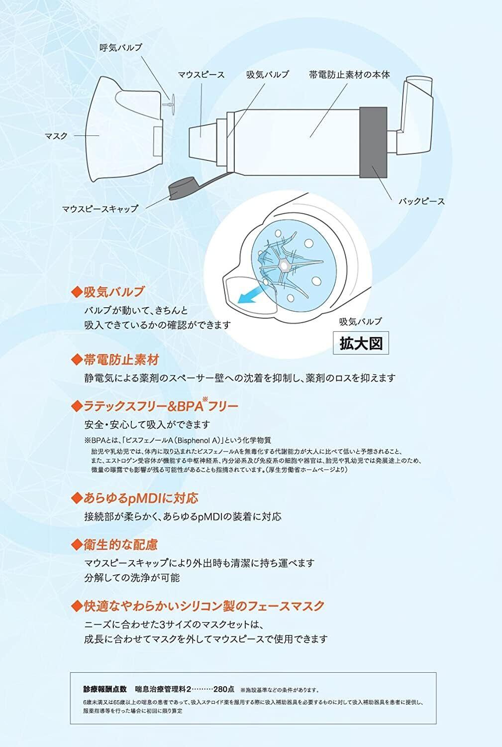 ●本体・マスクともに逆流防止弁付きですので、効率よく吸入できます。