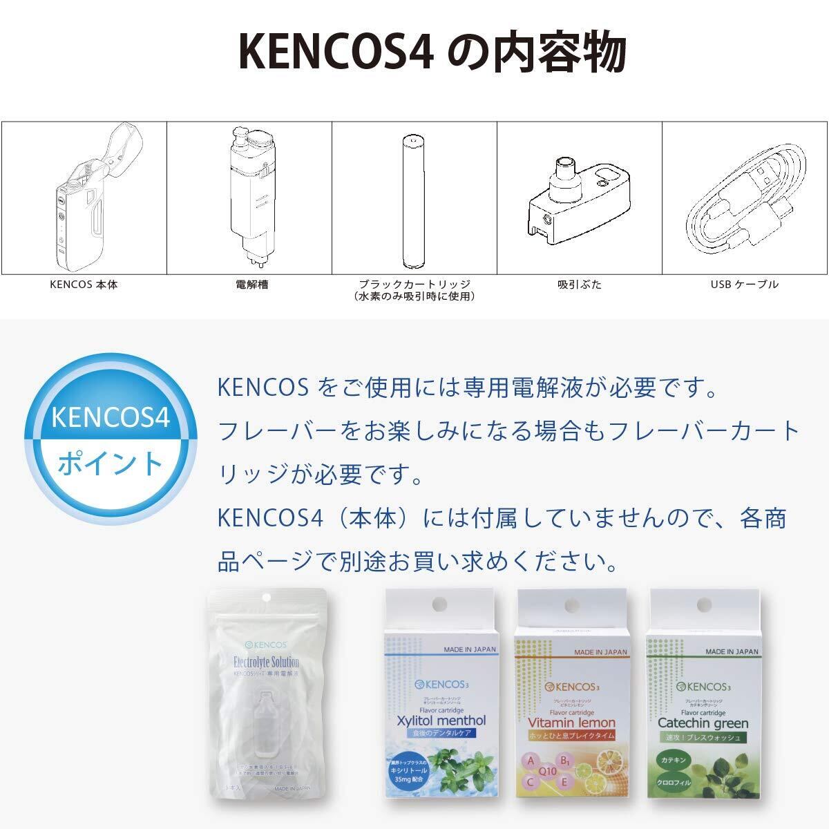 【ご注意】ご利用にはKENCOSシリーズ専用電解液が必要です。フレーバーをお楽しみになる場合も、専用フレーバーカートリッジが必要です。KENCOS4本体には付属しておりませんので別途お買い求めください。
