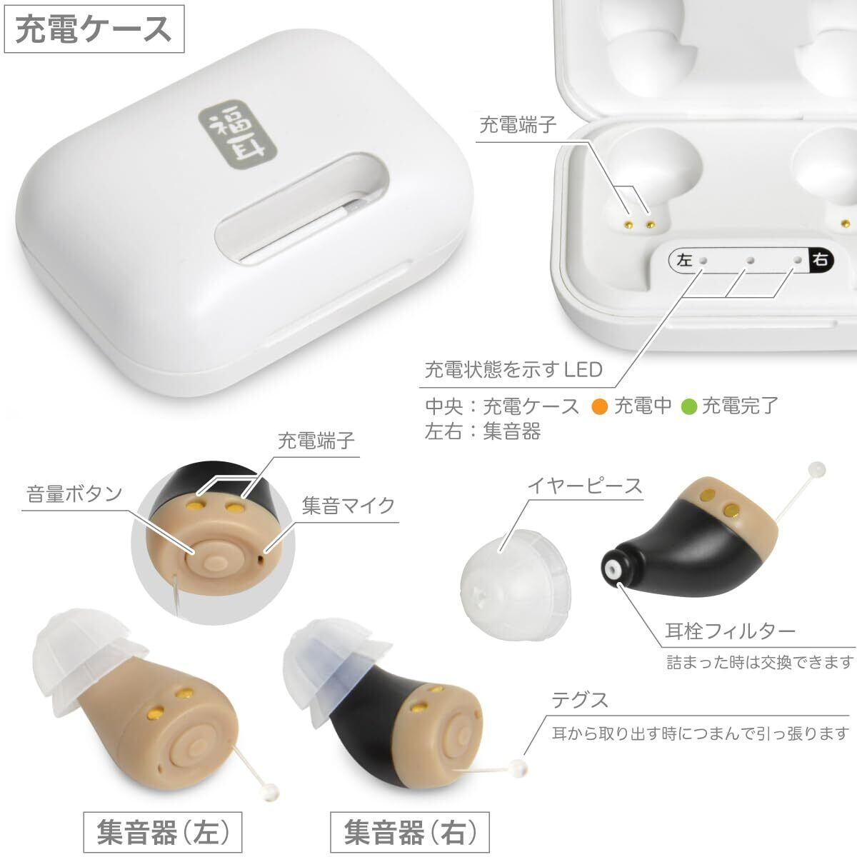 【新着商品】JTT Online 集音器 耳あな型 USB充電式 目立たない 極小 福耳 ちい彩音(ふくみみ ちいさいおん)BA型スピーカー 超小型 軽量2g 耳穴 左右 FUKUMICHSA