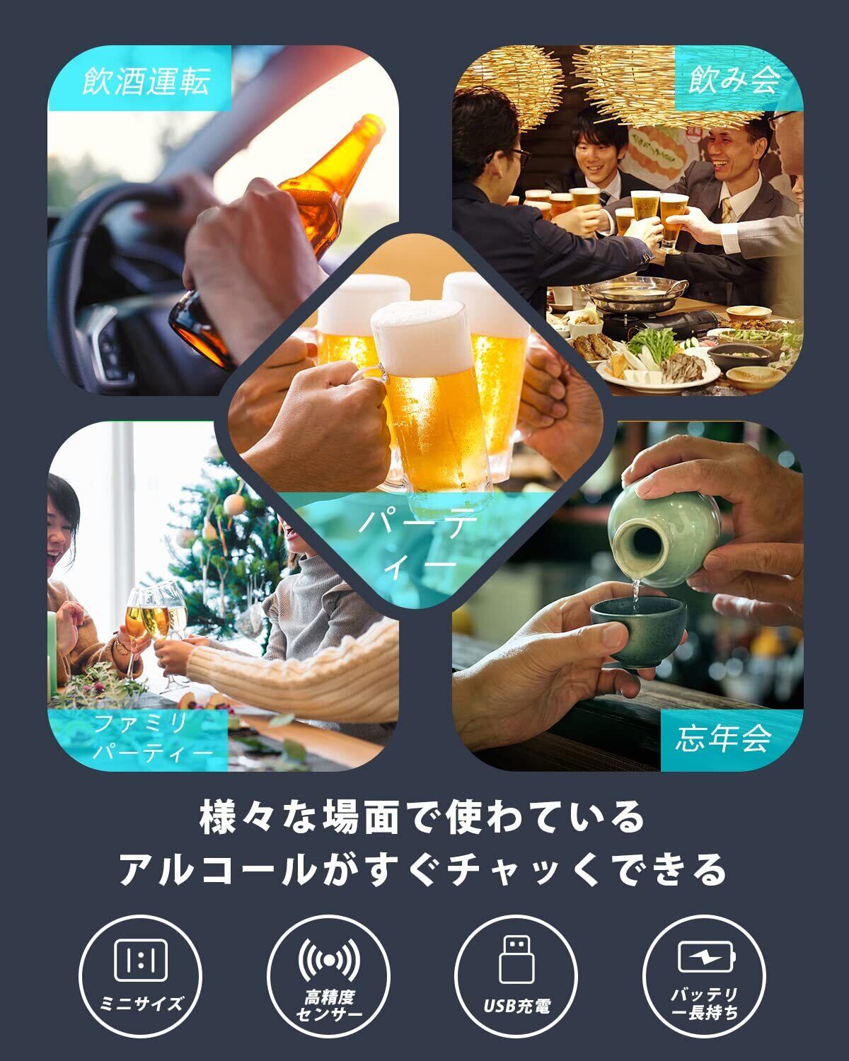 【国家公安委員会が定めるアルコール検知器】アルコールチェッカー アルコール検知器 アルコール濃度計 日本製センサー USB充電式 非接触型 アルコールテスター 高精度 業務用 飲酒チェッカー アルコール測定器 飲酒検知器 アルコール探知機 日付と時間の調整 吹込式 二日酔い 飲酒運転防止 適格請求書発行事業者 (AT-01)