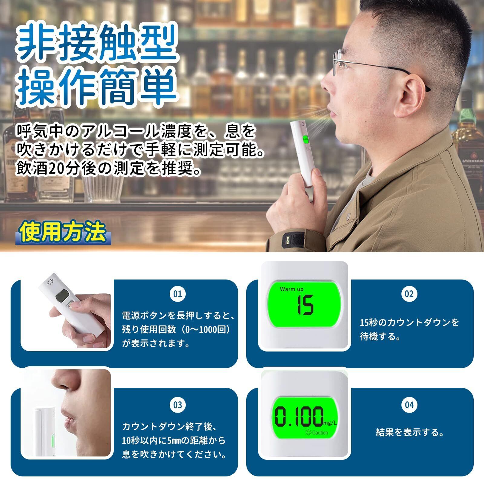 【非接触式・アルコール検知器協議会認証済み】本アルコールチェッカーは息を吹きかけるだけで呼気中のアルコール濃度を測定できます。道路交通法の改正により、安全運転管理者による運転者のアルコールチェックを確認し、その記録の保存することが義務付けられました。