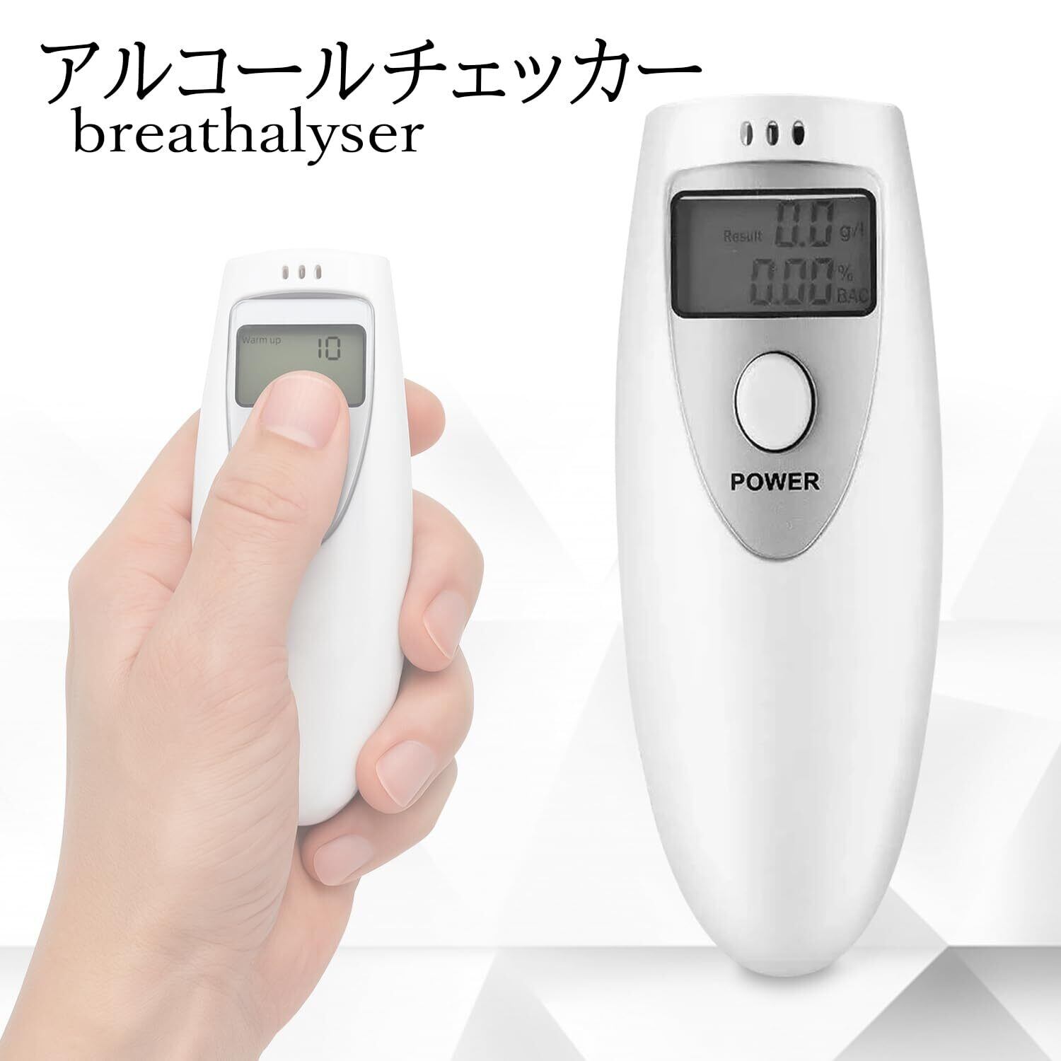 簡単操作で息を吹きかけるだけでアルコール濃度を測定。 二日酔いでも酒気帯びになる可能性があるので運転前にはしっかり測定しましょう。 ボタンを押して約10秒間のウォーミングアップ後、約5秒間計測タイムになります。 計測後、結果表示が行われ、自動で電源OFFになります。