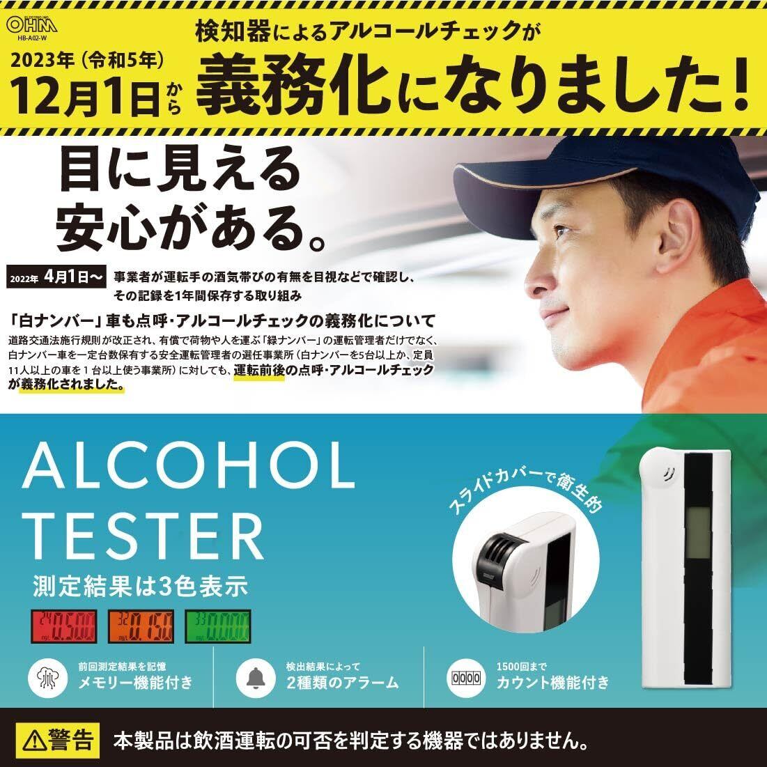 【新着商品】オーム電機 アルコールチェッカー 日本国内メーカー 【国家公安委員会が定めるアルコール検知器】アルコールテスター アルコールセンサー アルコール検知器 最新モデル 電池式 吹きかけ式 呼吸式 非接触式 HB-A03-W 08-1190 OHM
