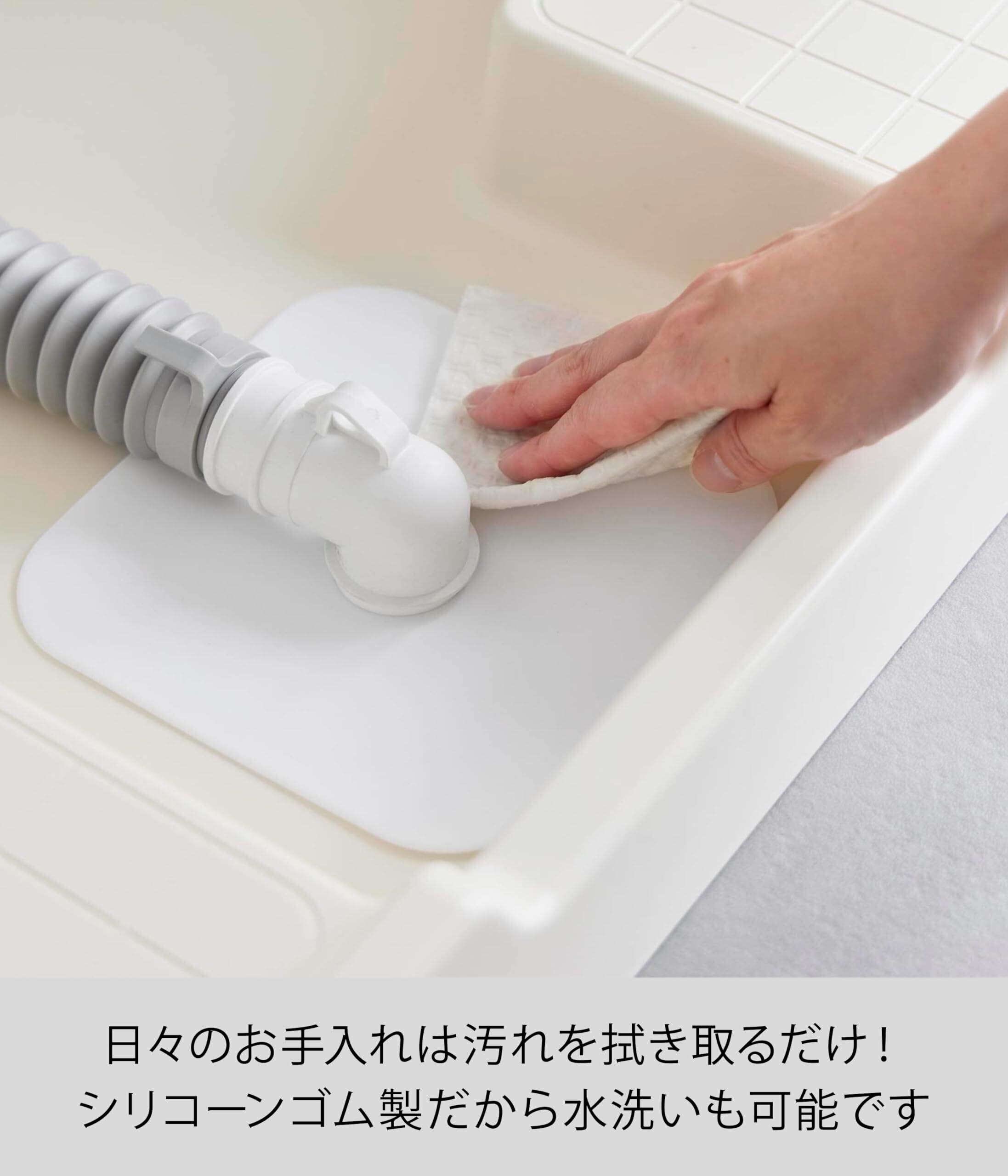 【在庫処分】山崎実業(Yamazaki) 洗濯機 排水トラップ ホコリ防止 カバー ホワイト W16×D16×H0.2cm プレート Plate カットガイド付き 排水口カバー シリコーン製 1423