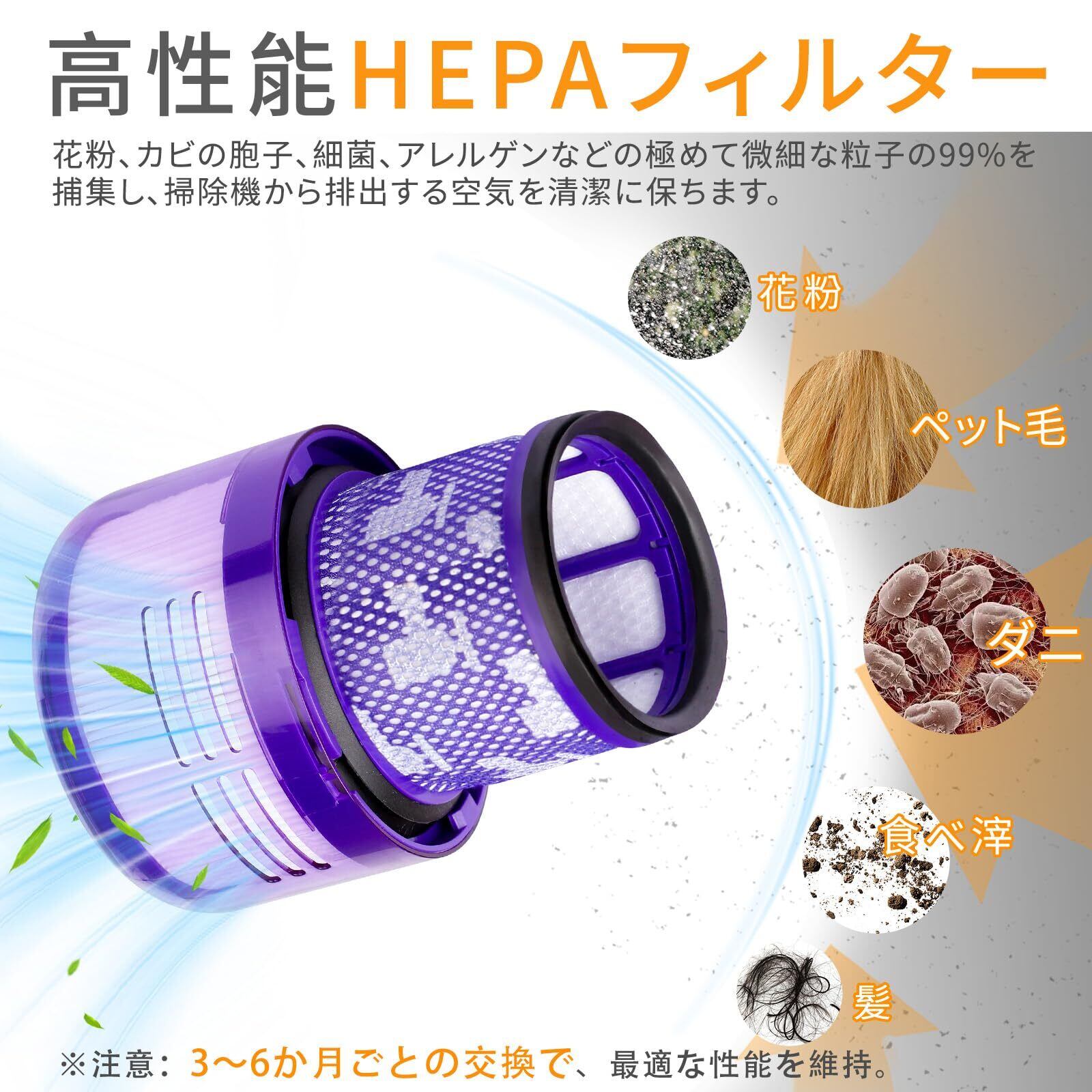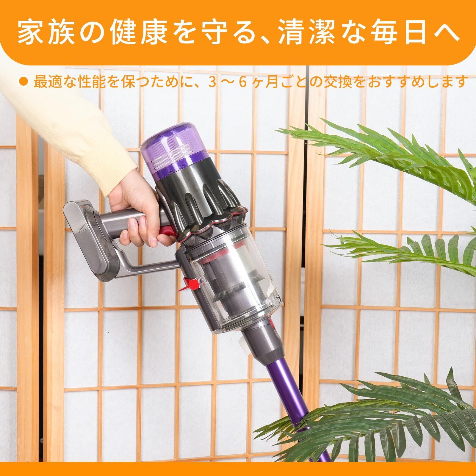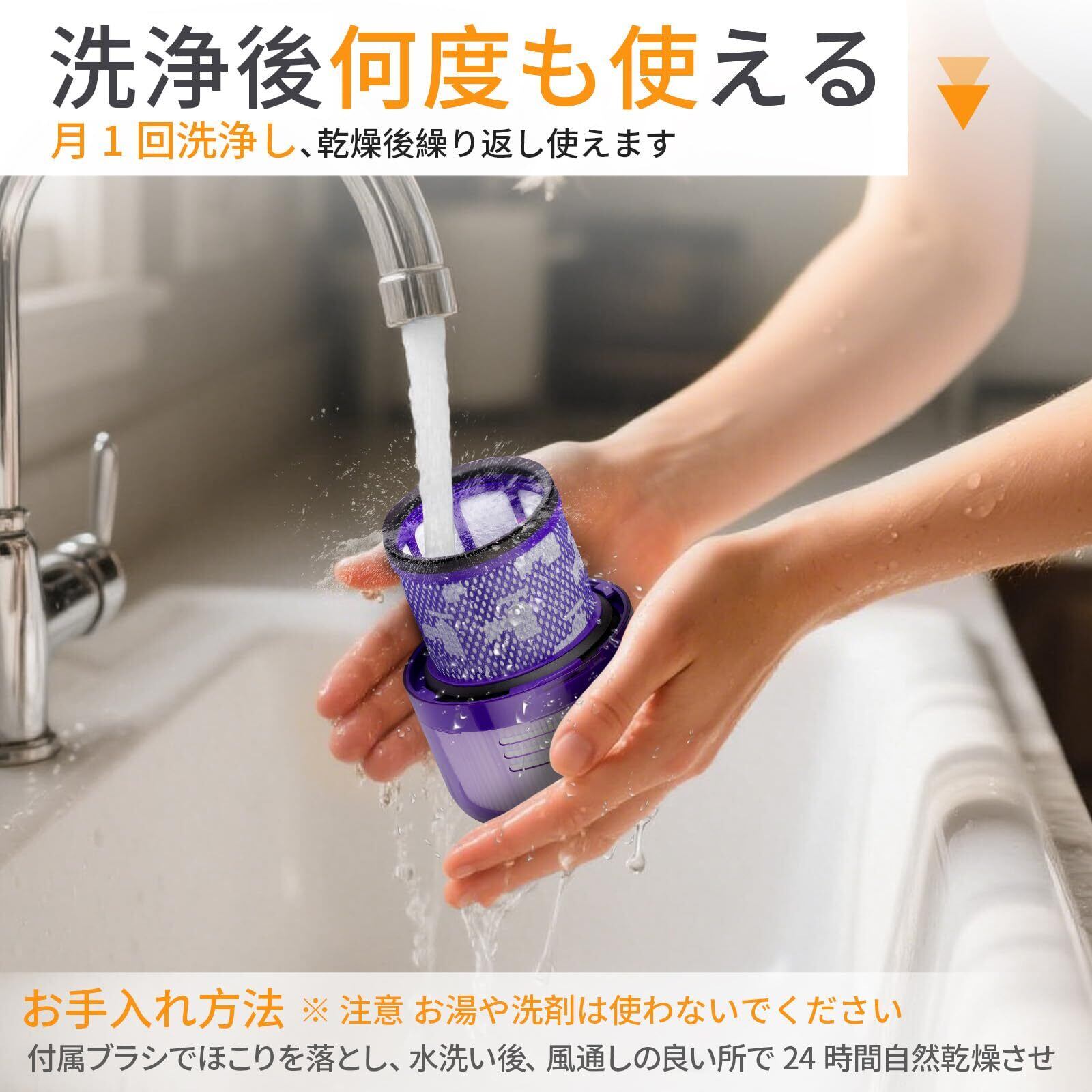 【水洗い可能・経済的】フィルターは水洗いに対応し、繰り返し使えます。風乾させた後は再利用でき、より経済的かつ環境に優しいです。毎月点検・清掃することを推奨します。水洗い後は風通しの良い場所で完全に乾かしてから再装着し、湿気による細菌繁殖が掃除機の性能に影響を与えないようにしてください。