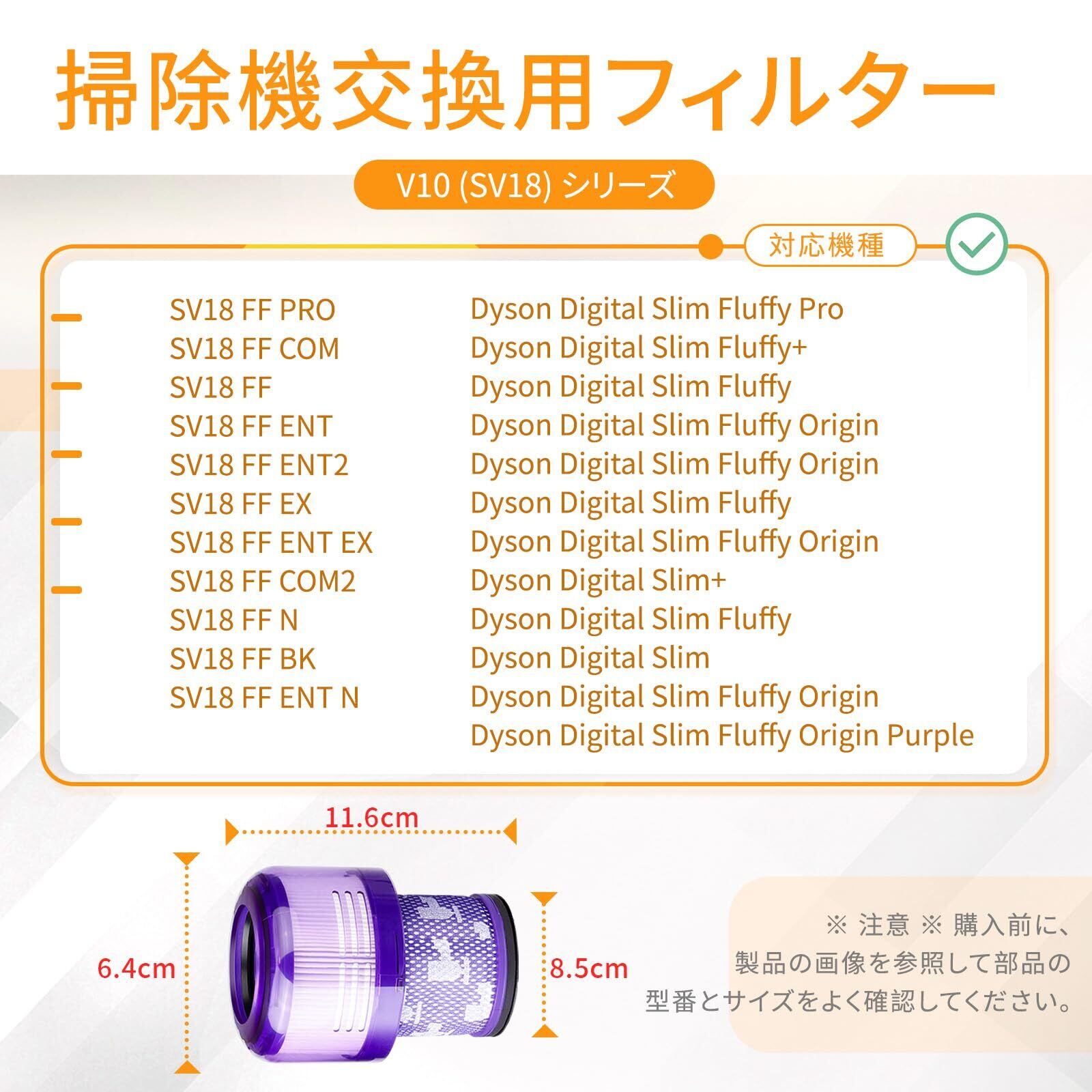 ダイソンSV18掃除機用フィルター、ダイソンDigital Slim Fluffy (SV18 FFN) 、SV18 FF COM2、SV18 FF H AM、SV18 FF OR2 AM互換性バキューム掃除機対応、HEPAフィルター 水洗可能、番号:97061201